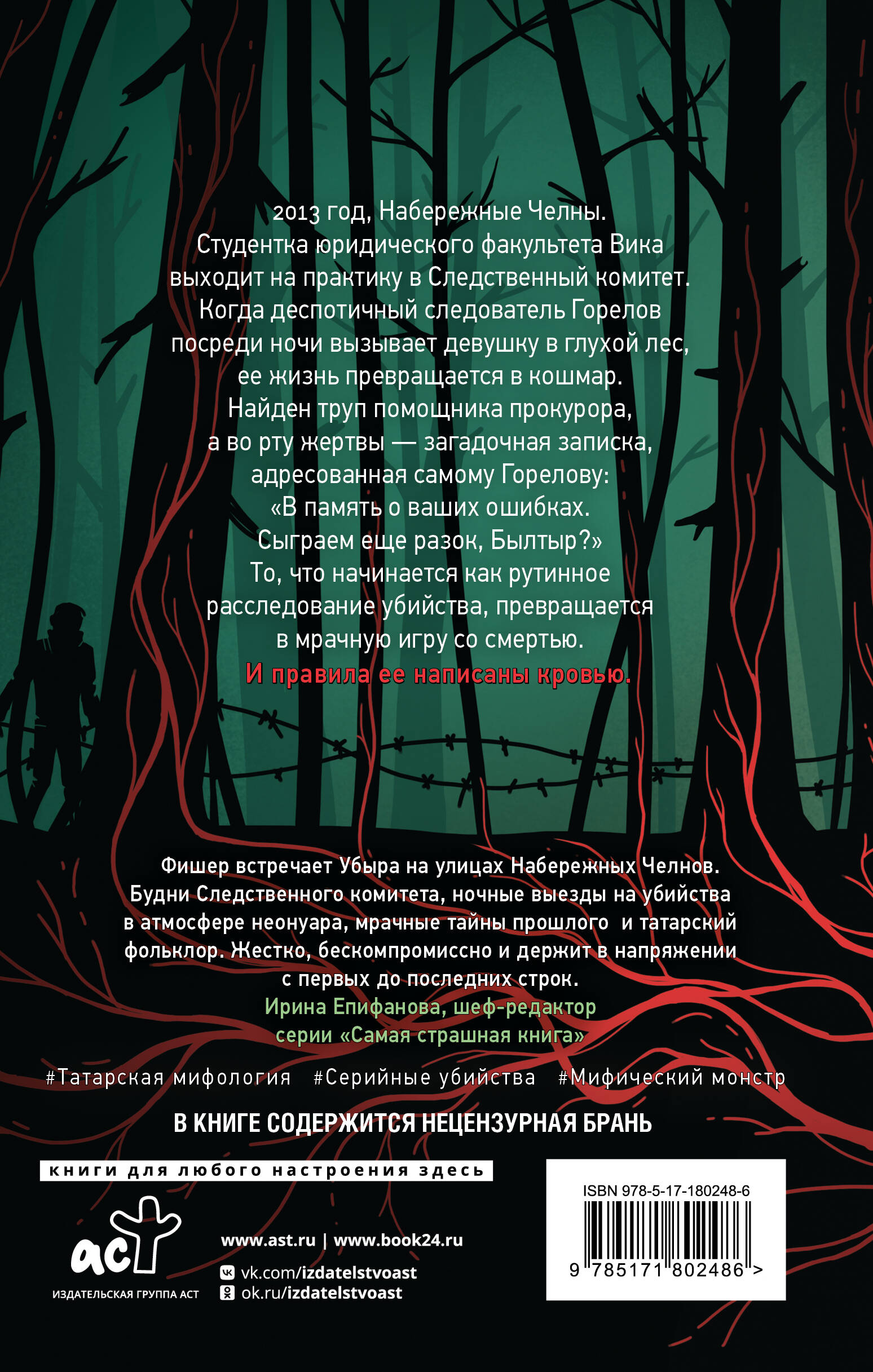 2013 год, Набережные Челны. Студентка юридического факультета Вика выходит на практику в Следственный комитет. Когда деспотичный следователь Горелов посреди ночи вызывает девушку в глухой лес, еe жизнь превращается в кошмар. Найден труп помощника прокурора, а во рту жертвы - загадочная записка, адресованная самому Горелову: "В память о ваших ошибках. Сыграем еще разок, Былтыр?" То, что начинается как рутинное расследование убийства, превращается в мрачную игру со смертью. И правила ее написаны кровью.| Издательство | Издательство "АСТ" |