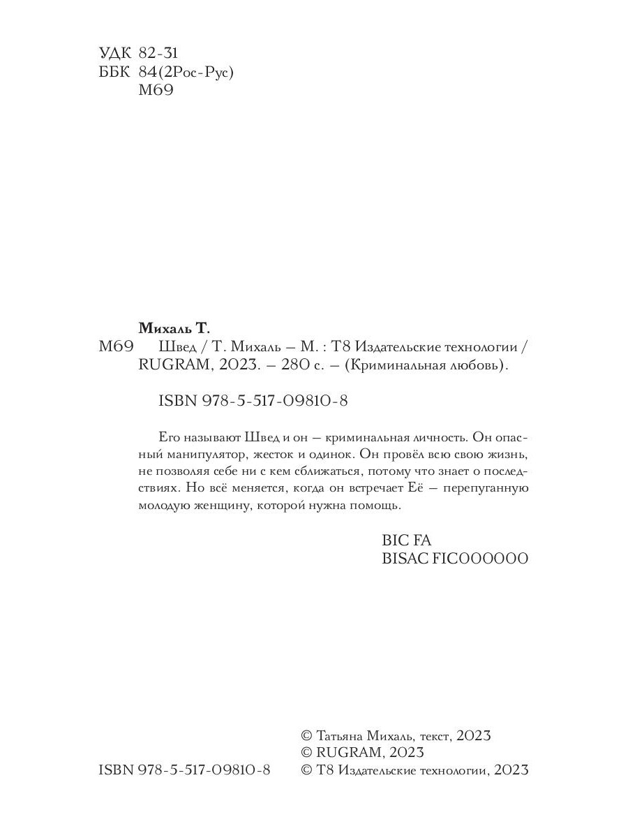 Его называют Швед и он - криминальная личность. Он опасный манипулятор, жесток и одинок. Он провёл всю свою жизнь, не позволяя себе ни с кем сближаться, потому что знает о последствиях. Но всё меняется, когда он встречает Её - перепуганную молодую женщину, которой нужна помощь.