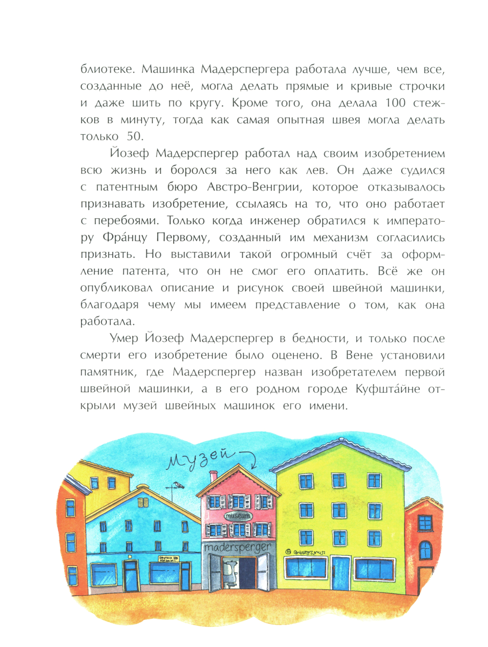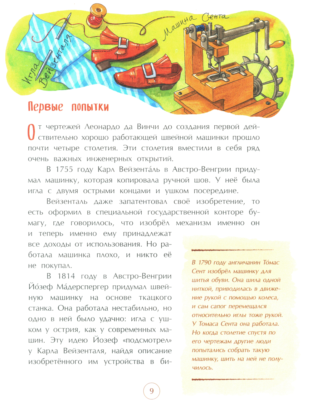 Раньше всю одежду шили вручную - это было очень долго и дорого. Но неутомимые изобретатели снова и снова предпринимали попытки придумать устройство для шитья, пока это наконец не удалось! Эта книга - о неудачах и успехах, приведших к изобретению швейной машинки, благодаря которой каждый из нас может носить удобную и красивую одежду.| Издательство | Настя и Никита |