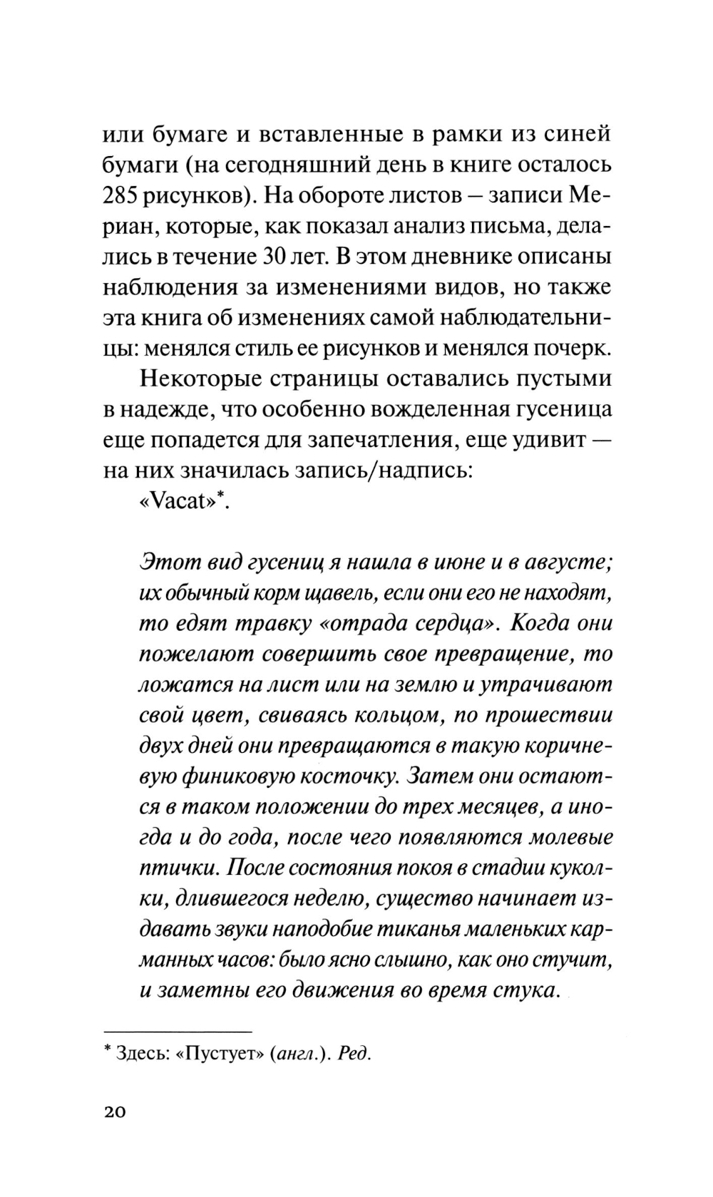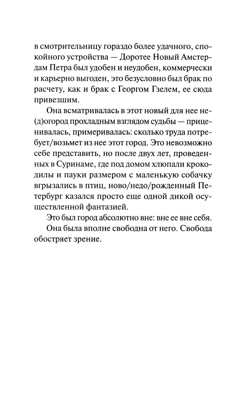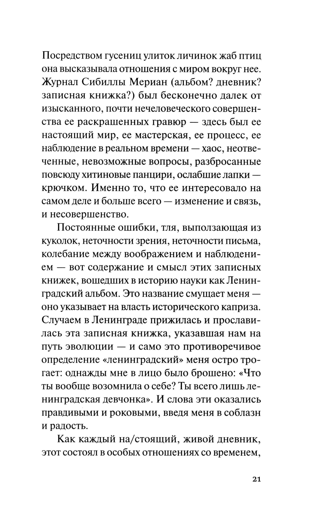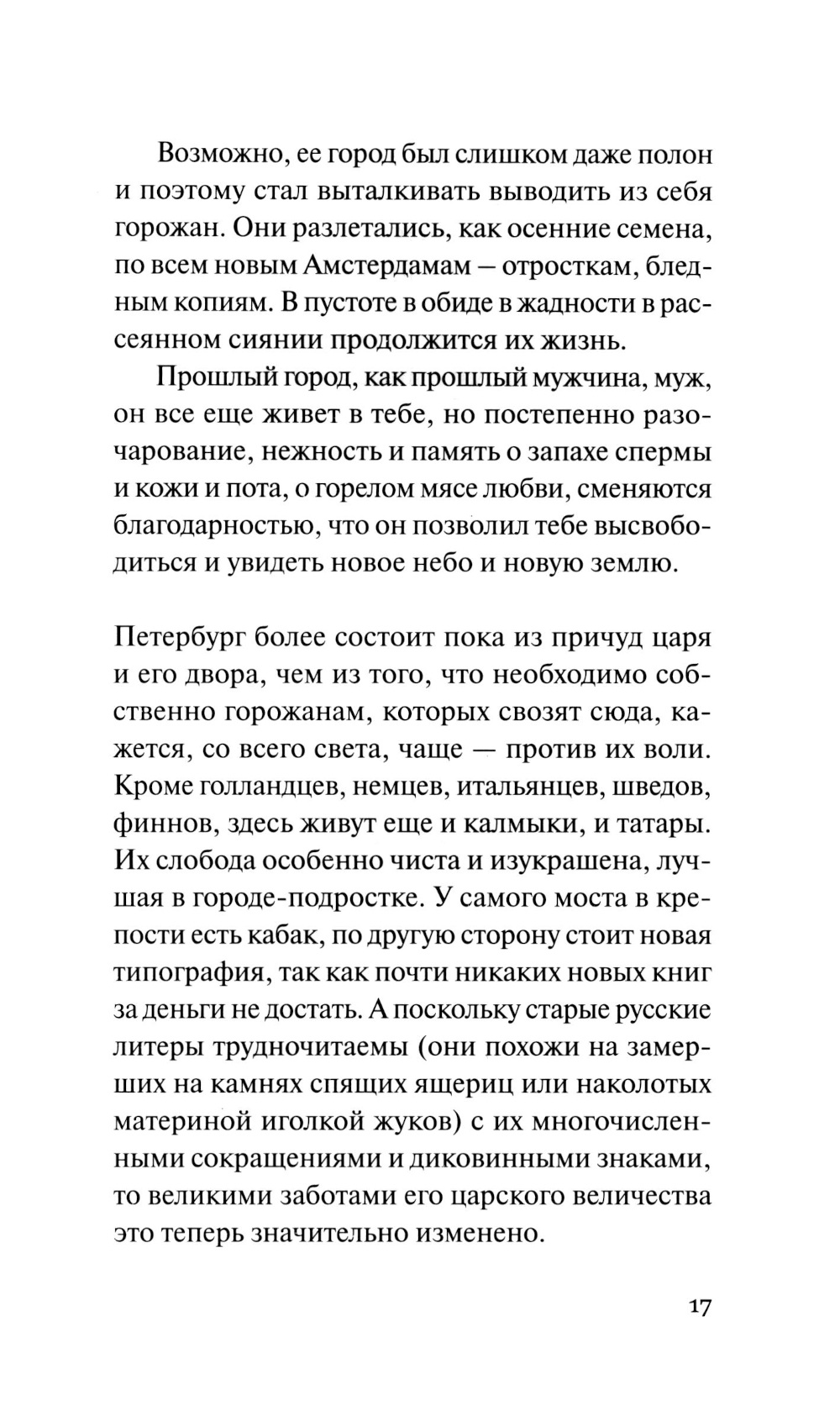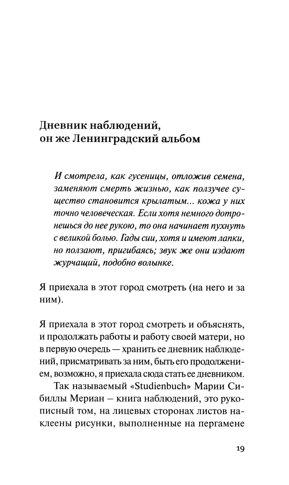 Новая проза Полины Барсковой - о связях человека и места его обитания, об их утрате, поиске и мучительном их восстановлении. В ее основе - история Доротеи Мериан, художницы, которая приехала в Россию по приглашению Петра в 1718 году и стала наставницей первого поколения русских акварелистов и граверов и хранительницей Кунсткамеры. Это история о ее связи с матерью, великим энтомологом, художницей и путешественницей Сибиллой Мериан, которой принадлежит открытие метаморфоза у насекомых. А еще это история о Петербурге, который поначалу был только репликой Амстердама и лишь постепенно приобрел свои собственные черты и свою особую судьбу. Но, может быть, самой важной частью этого целого является попытка автора рассказать свою историю об утрате города и обретении себя, поиске языка и собственном превращении.| Издательство | Изд. Ивана Лимбаха |