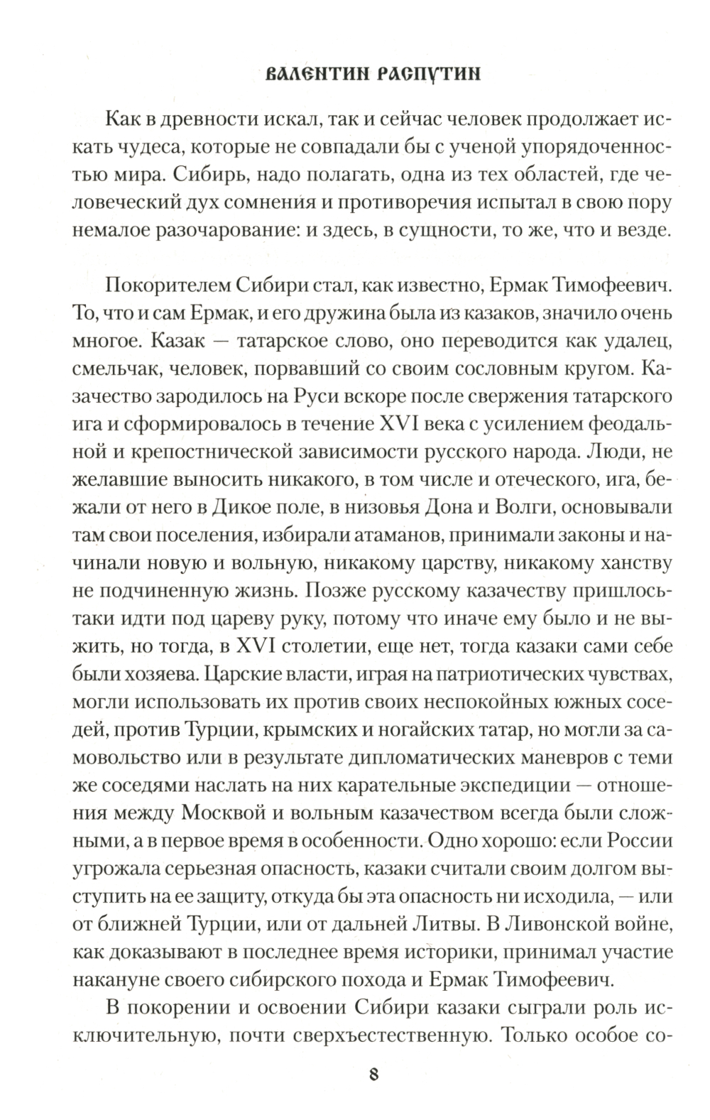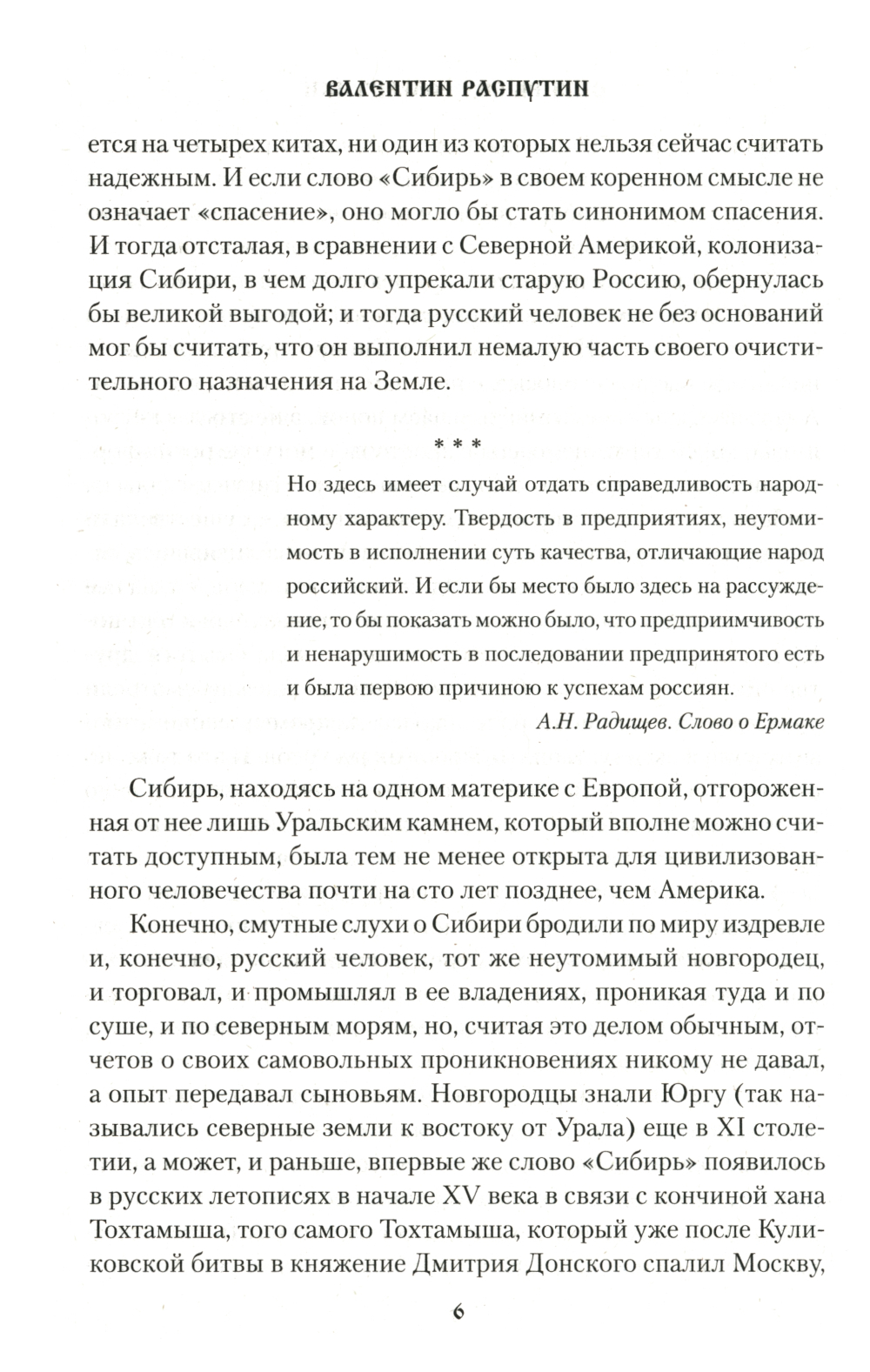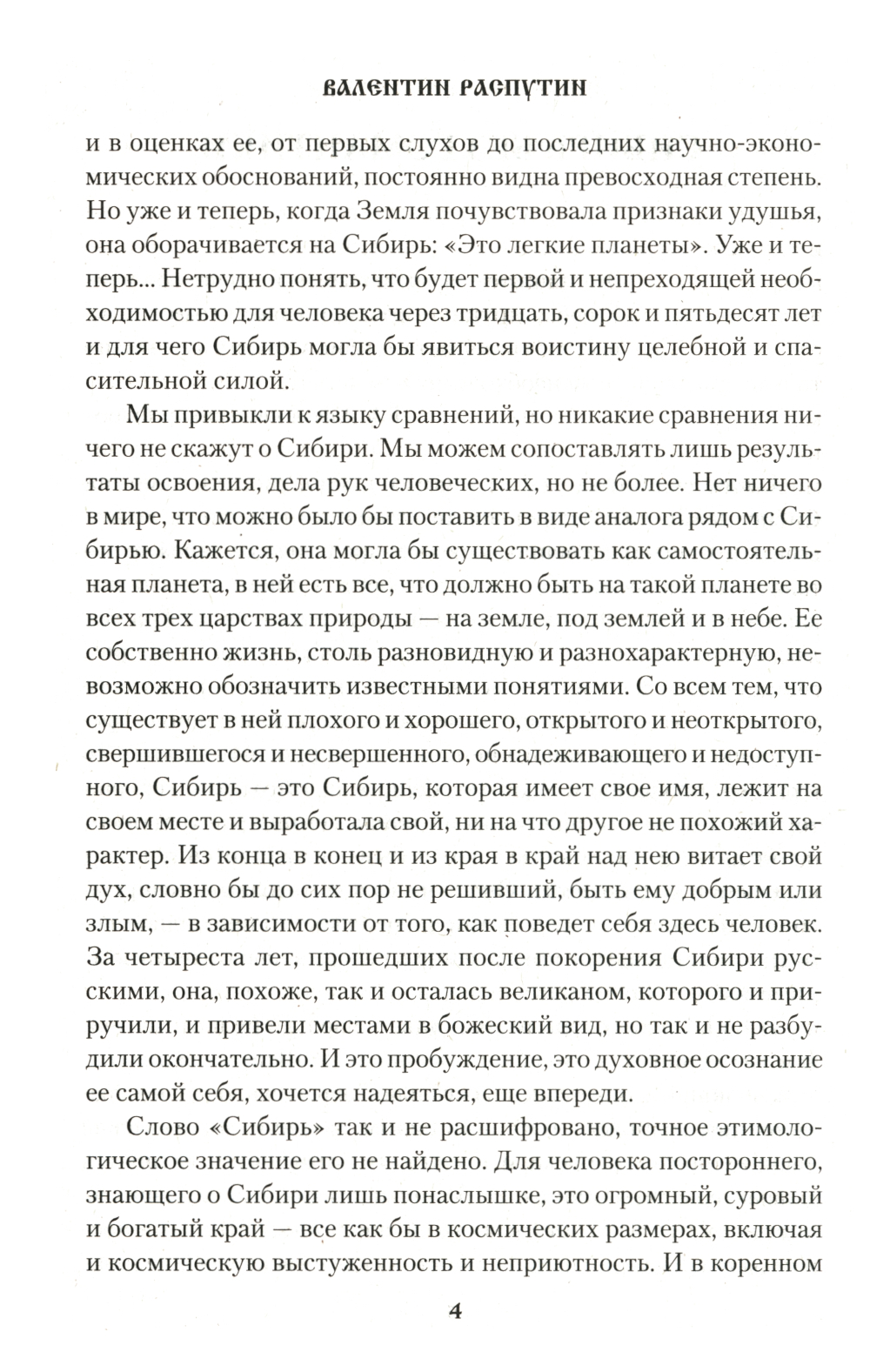 Справедливо ли, что Сибирь принадлежит одной России? И не пора ли России поделиться или вовсе, как когда-то Аляску, уступить Америке этот богатейший и все еще не до конца изведанный край? Сегодня трудно в это поверить, но в конце ХХ века этот ошеломительный вопрос всерьёз стоял чуть ли не на повестке дня в кругу так называемых цивилизованных мировых держав. И поныне со всех сторон к Сибири слетаются хищники. И не одно столетие Сибирь доказывала, что она не российская колония, а неотъемлемая и вечная часть ее, не раз спасавшая и укреплявшая мощь и славу России. Эта книга очерков Валентина Распутина - дань благодарности своему родному краю, его красоте и самобытности, глубокое размышление о прошлом, настоящем и будущем Сибири. Тексты (кроме очерков «Транссиб» и «Кругобайкалка») печатаются в ранних редакциях.| Издательство | Вече |