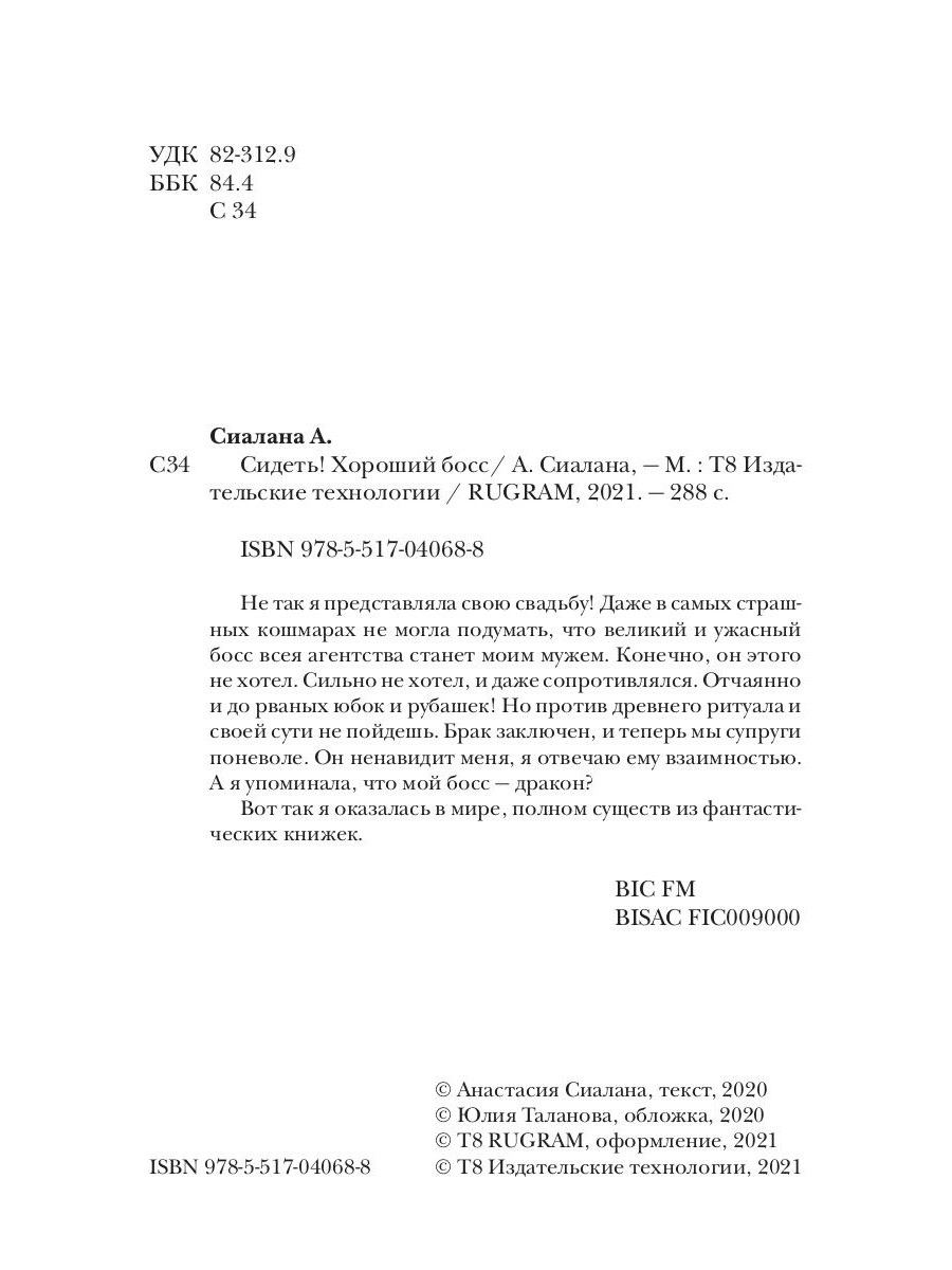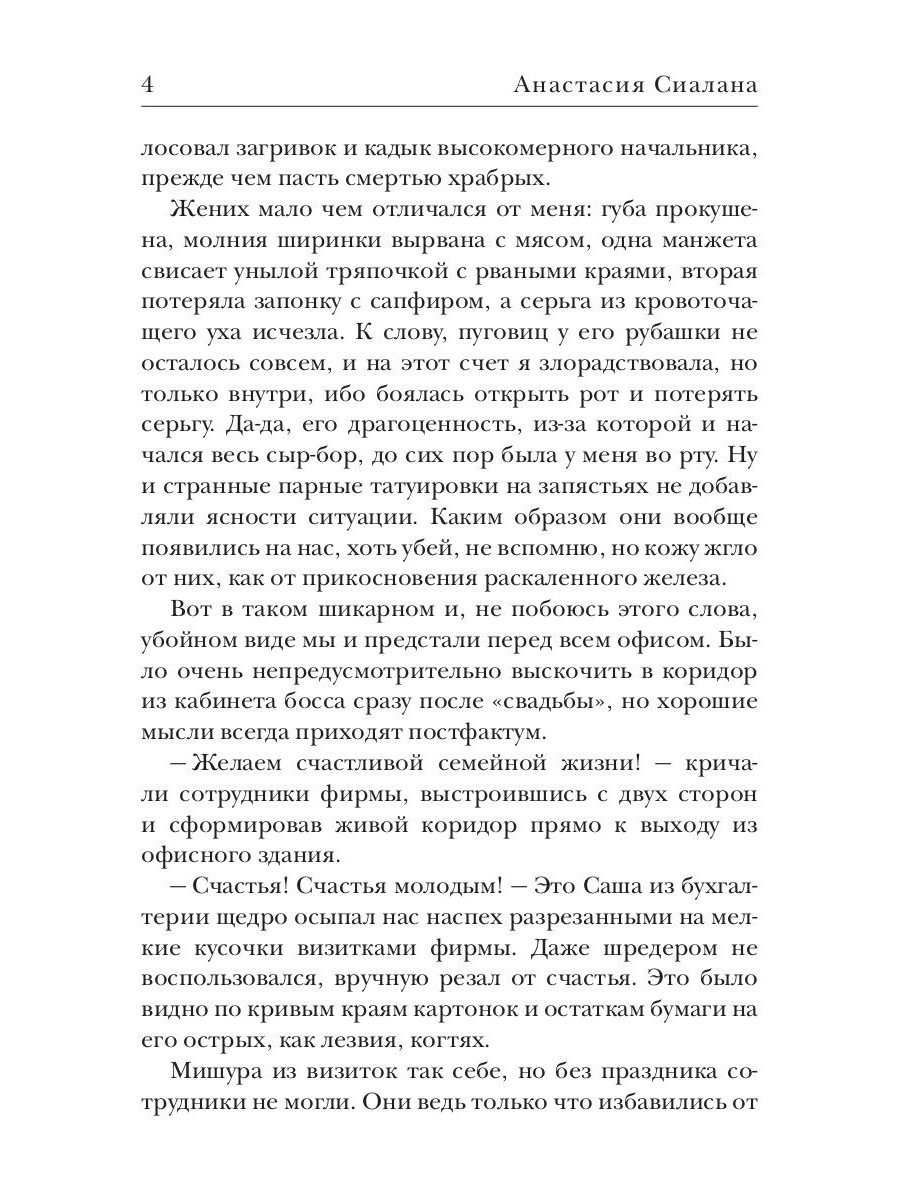 Не так я представляла свою свадьбу! Даже в самых страшных кошмарах не могла подумать, что великий и ужасный босс всея агентства станет моим мужем. Конечно, он этого не хотел. Сильно не хотел, и даже сопротивлялся. Отчаянно и до рваных юбок и рубашек! Но против древнего ритуала и своей сути не пойдешь. Брак заключен, и теперь мы супруги поневоле. Он ненавидит меня, я отвечаю ему взаимностью. А я упоминала, что мой босс - дракон? Вот так я оказалась в мире, полном существ из фантастических книжек.| Издательство | Т8 RUGRAM |