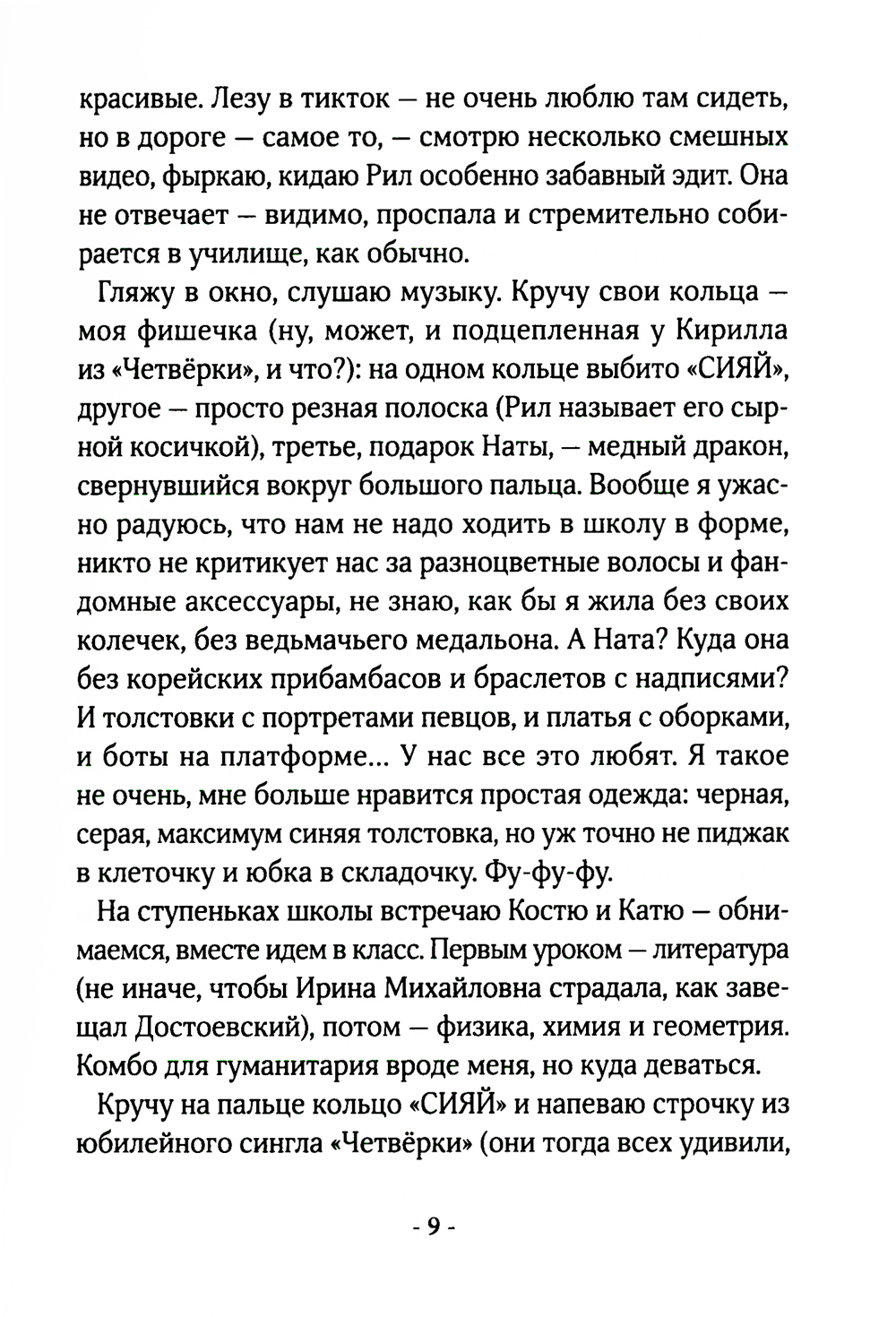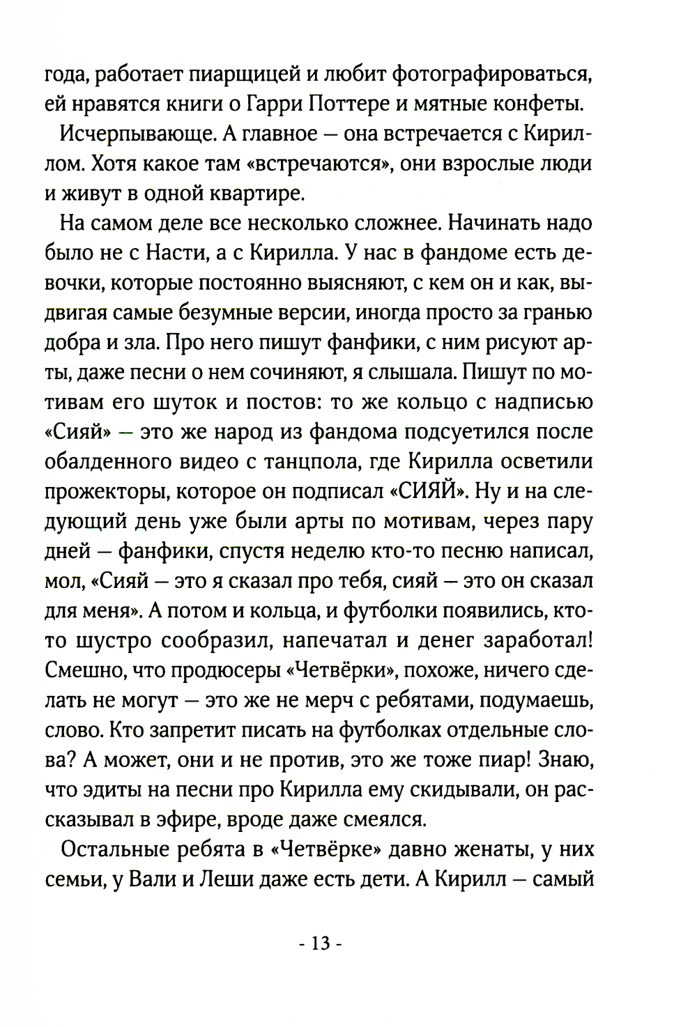 У десятиклассницы Ярославы, кажется, есть все, чтобы быть счастливой: понимающие родители, близкие подруги, школа, в которой ей по-настоящему нравится. И общение в любимых фандомах, которое делает все интереснее и ярче… А еще у Яси есть тайна - слишком неловкая, чтобы можно было ей поделиться, слишком любимая, чтобы от нее отказаться, и слишком жгучая, чтобы о ней молчать. Сможет ли Яся выстоять и вырасти над собой, когда о ее тайне узнают? И кто поможет ей в этом? Ольга Лишина - известная поэтесса, автор многих текстов для фолк-рок-группы «Мельница», литературный критик и книжный блогер. Повесть «Сияй!» - ее дебют в подростковой прозе. Для детей среднего школьного возраста.