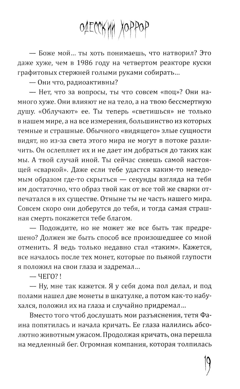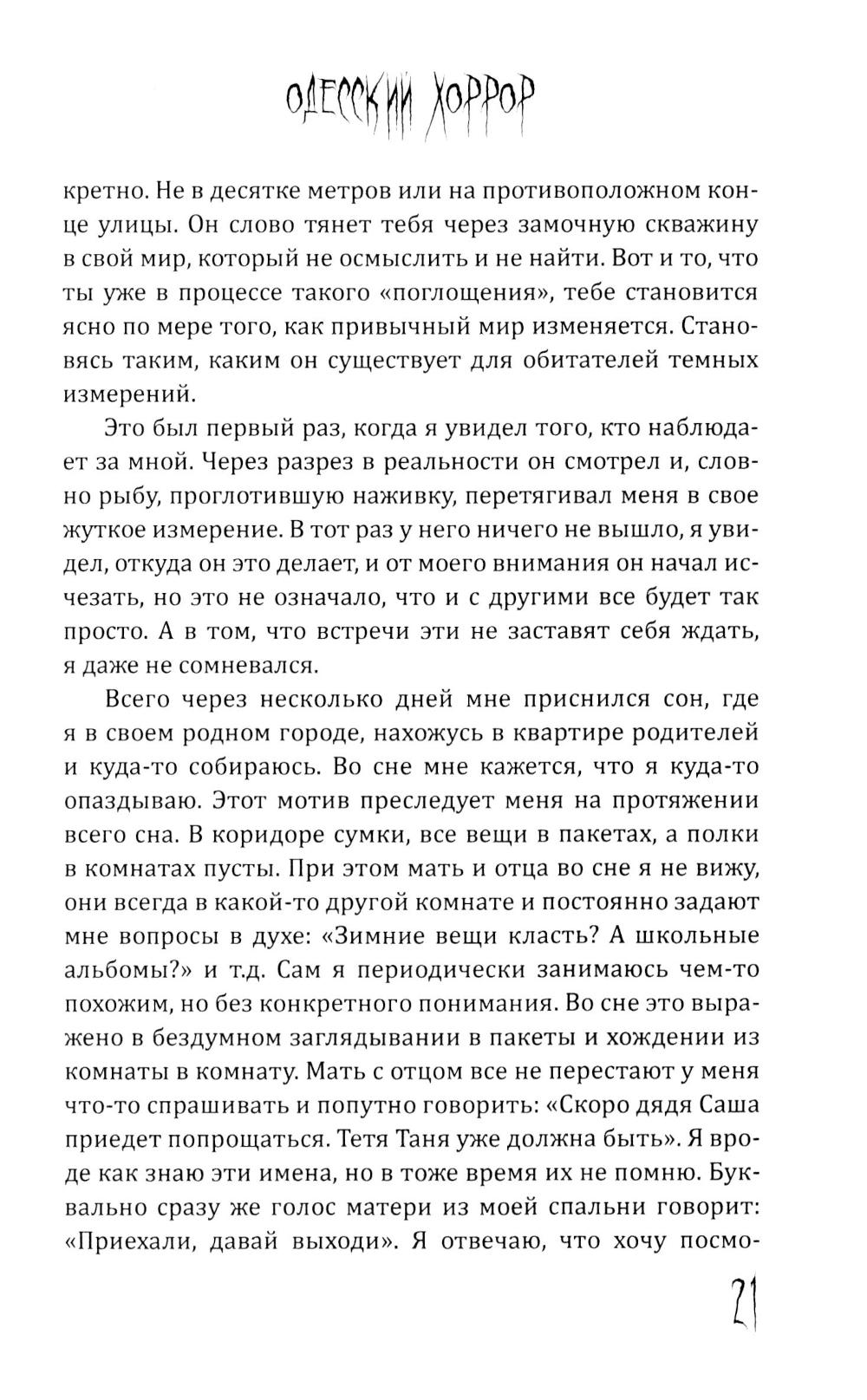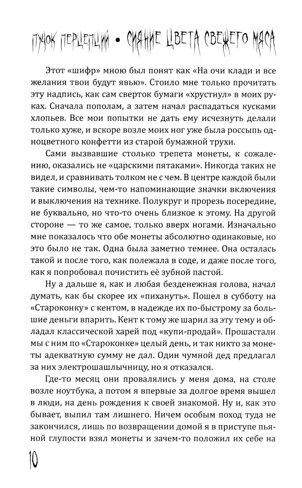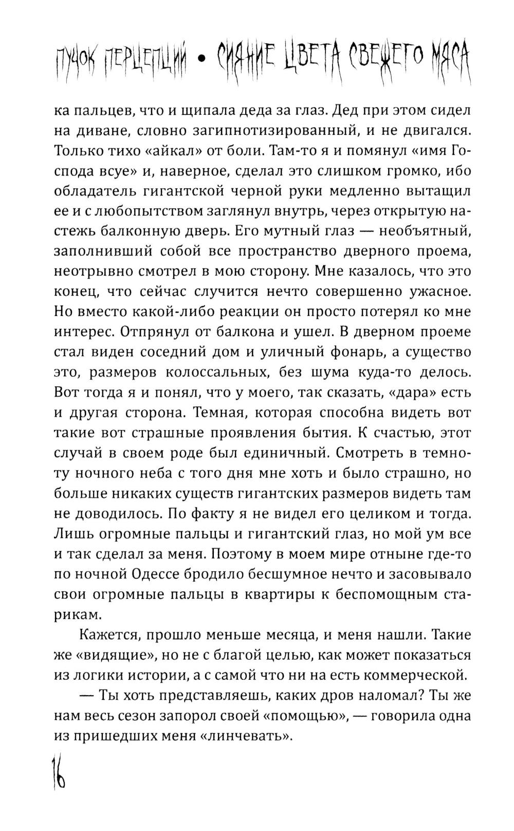 Пучок Перцепций - новый, молодой голос постсоветского хоррора. Один из самых ярких авторов ужасов на всём постсоветском пространстве. Именно он довел лавкрафтовский ужас на фоне панелек и заброшек до невероятного мастерства и филологического совершенства. Подростки рисуют на стене гаража Рыло, - и оно становится порталом в космический ужас. Несколько мажоров оказываются в сельской местности и видят хрущёвки, закопанные по крышу в землю. Загадочный подросток в компьютерном клубе начала нулевых может ввести вас в квартиру, которой нет на карте. Это истории, происходящие в знакомых каждому из нас декорациях разбитых дворов, заброшенных промзон и аварийных домов. Спешите познакомиться с современным русским хоррором!| Издательство | Родина |