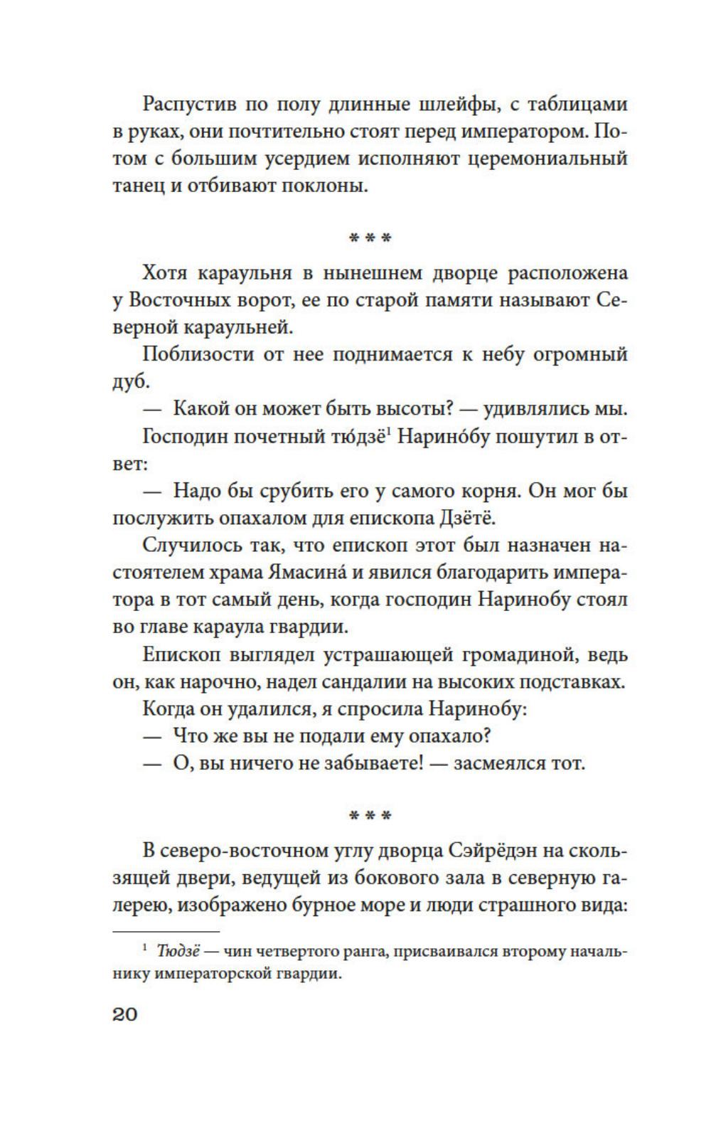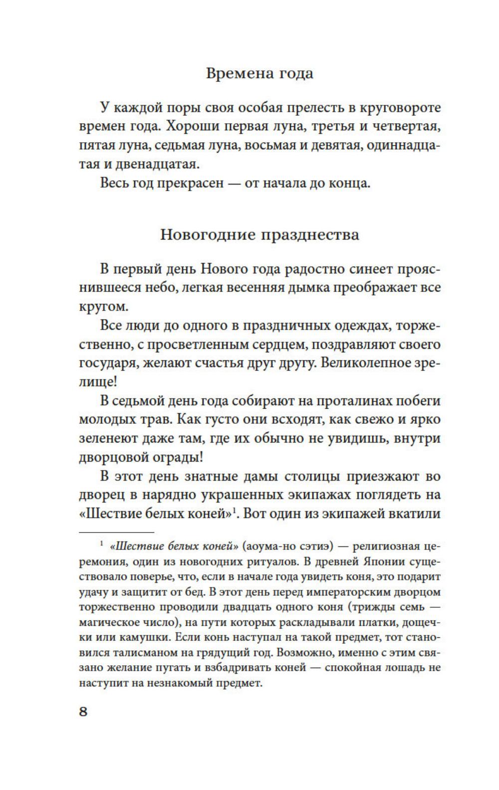 Начиная с эпохи Хэйан японские лирические дневники занимают особое место в мировой литературе и истории. Это не только занимательные картины частной или придворной жизни средневековой Японии, погружение в ее будни и праздники, ритуалы и обычаи или любование ее завораживающими пейзажами. Красота слога, нежная горечь размышлений об эфемерности бытия и свежесть взгляда на окружающий мир роднят эти дневники с поэзией, которая порой становится их неотъемлемой частью. Искренность и тонкий психологизм этих записей неизменно находят отклик в сердцах людей иных времен и культур. В настоящее издание вошли признанные шедевры японской лирической прозы: «Записки у изголовья» Сэй Сёнагон, «Дневник» Мурасаки Сикибу, «Путевые дневники» Мацуо Басё, фрагменты «Дневника летучей паутинки» Митицуна-но хаха, «Записки из беседки над прудом» Ёсисигэ-но Ясутанэ, «Дневник путешествия из Тоса в столицу» Ки-но Цураюки.| Издательство | Азбука |