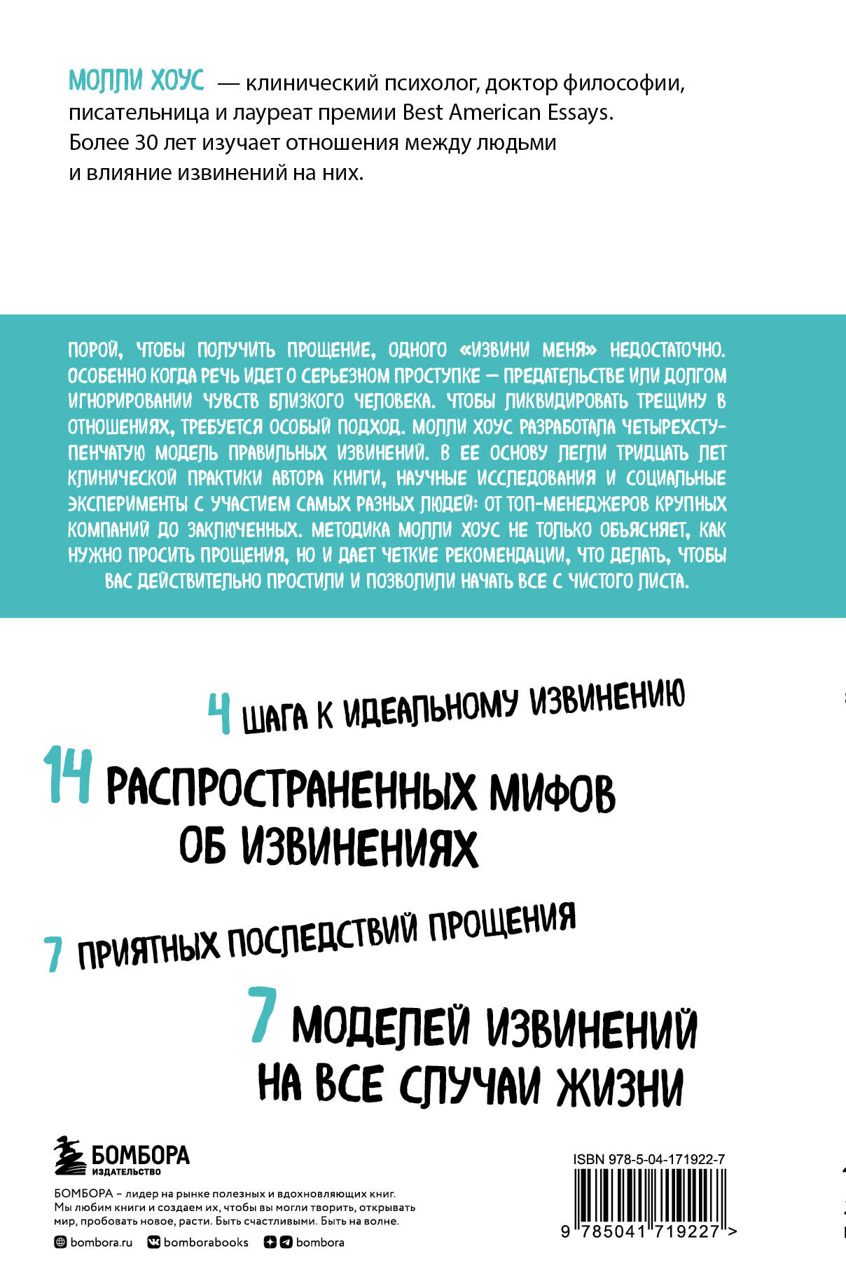 ИЗ ЭТОЙ КНИГИ ВЫ УЗНАЕТЕ: - как наладить отношения с другими людьми; - как урегулировать семейные конфликты; - как стать медиатором в конфликтах; - как не провоцировать конфликты на политической почве; - как наилучшим образом содействовать работе в области правосудия; - как научить детей искренне извиняться. ОБ АВТОРЕ Молли Хоус, доктор философии, является клиническим психологом и писательницей с множеством наград. После окончания Гарвардской Медицинской школы она получила докторскую степень по клинической психологии в Университете штата Флорида и Гарвардскую магистерскую стипендию. Доктор Хоуз внесла свой вклад в исследовательские проекты, изучающие последствия депрессии и влияние рака родителя на психологическое благополучие ребенка. Она является автором нескольких научных работ и выступает на конференциях для профессиональных организаций, таких как Американская психологическая ассоциация. В течение тридцати пяти лет она вела независимую психотерапевтическую практику, в которой она лечила семейные пары, а также отдельных пациентов всех возрастов. ЦИТАТЫ: • Произнесенные извинения восстанавливают разрушенные связи. Мы уменьшаем наше одиночество и стыд, делаем отношения сильнее. Так мы строим доброе и цивилизованное общество. • В коллективах столкновение интересов и разрешение конфликтов - это именно то, что ведет к росту доверия, повышает уровень ответственности и приверженности корпоративным целям. • Больше всего боли приносят не многочисленные ошибки, а наша неспособность их исправить. Вот что разбивает сердца и отношения. • Когда извинения из далекого прошлого лишь обнажают мучительные воспоминания, правильным выбором может быть молчание. • Прощение людей может помочь им или сообществу, но самым главным бенефициаром вашего прощения часто являетесь вы сами.| Издательство | ООО "Издательство "Эксмо" |