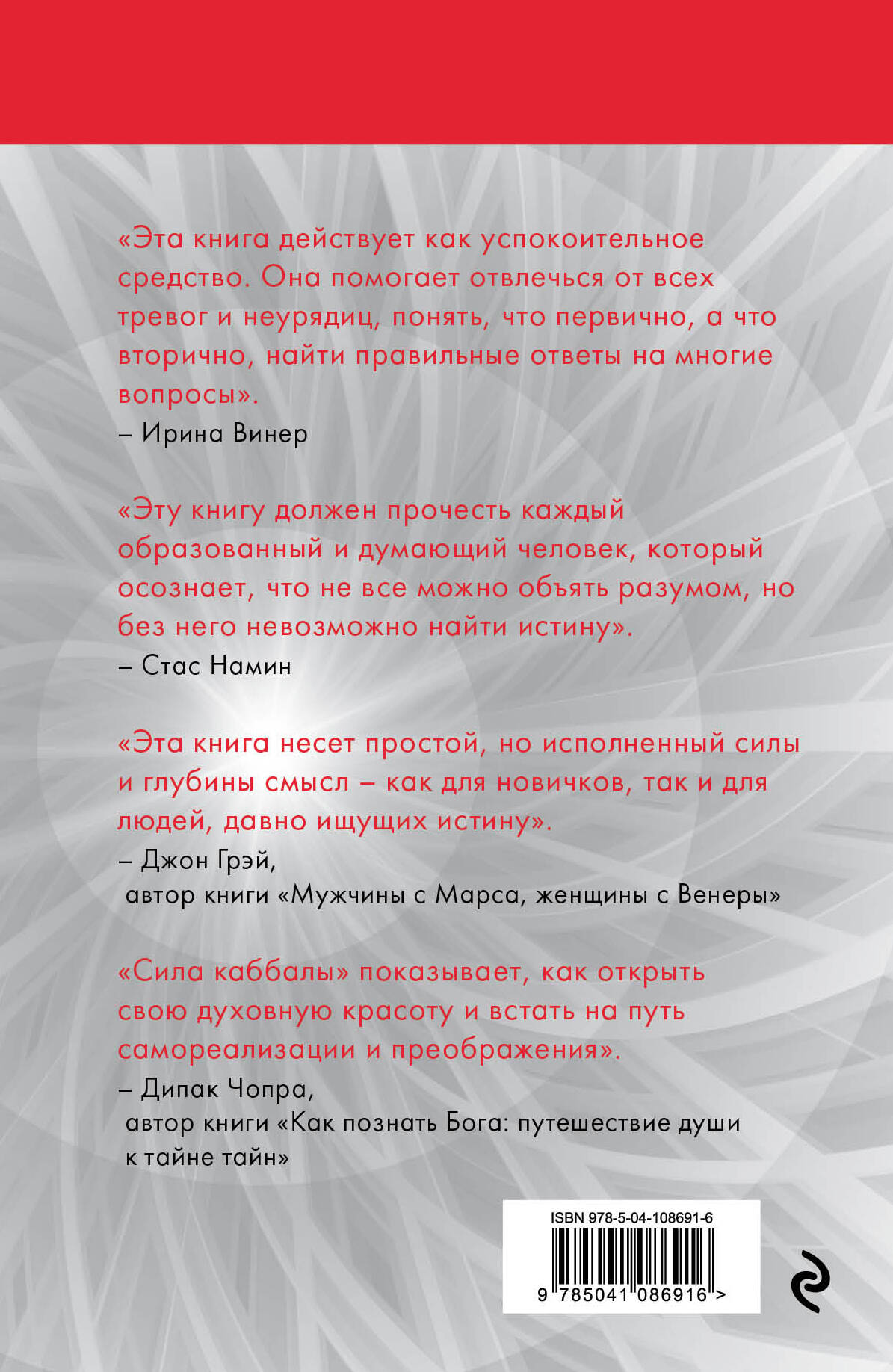 ОТЗЫВЫ О КНИГЕ «Эти идеи не имеют ничего общего ни с магией, ни с религиозной догмой. Они потрясают своей силой и простотой». - Мадонна «Сила каббалы» показывает, как открыть красоту собственного духа и встать на путь самореализации и преображения». - Дипак Чопра «Каббалу давно ждали… Это ответ на жажду американцев в отношении инструментов из серии «помоги себе сам» и ответов на большие метафизические вопросы, с которыми сталкиваются люди по мере взросления». - New York Times «Цель каббалы состоит в наполнении, а также в том, чтобы помогать другим и позволить высшему разуму помочь вам… Она придает сил в трудные времена». - журнал GLAMOUR, Великобритания