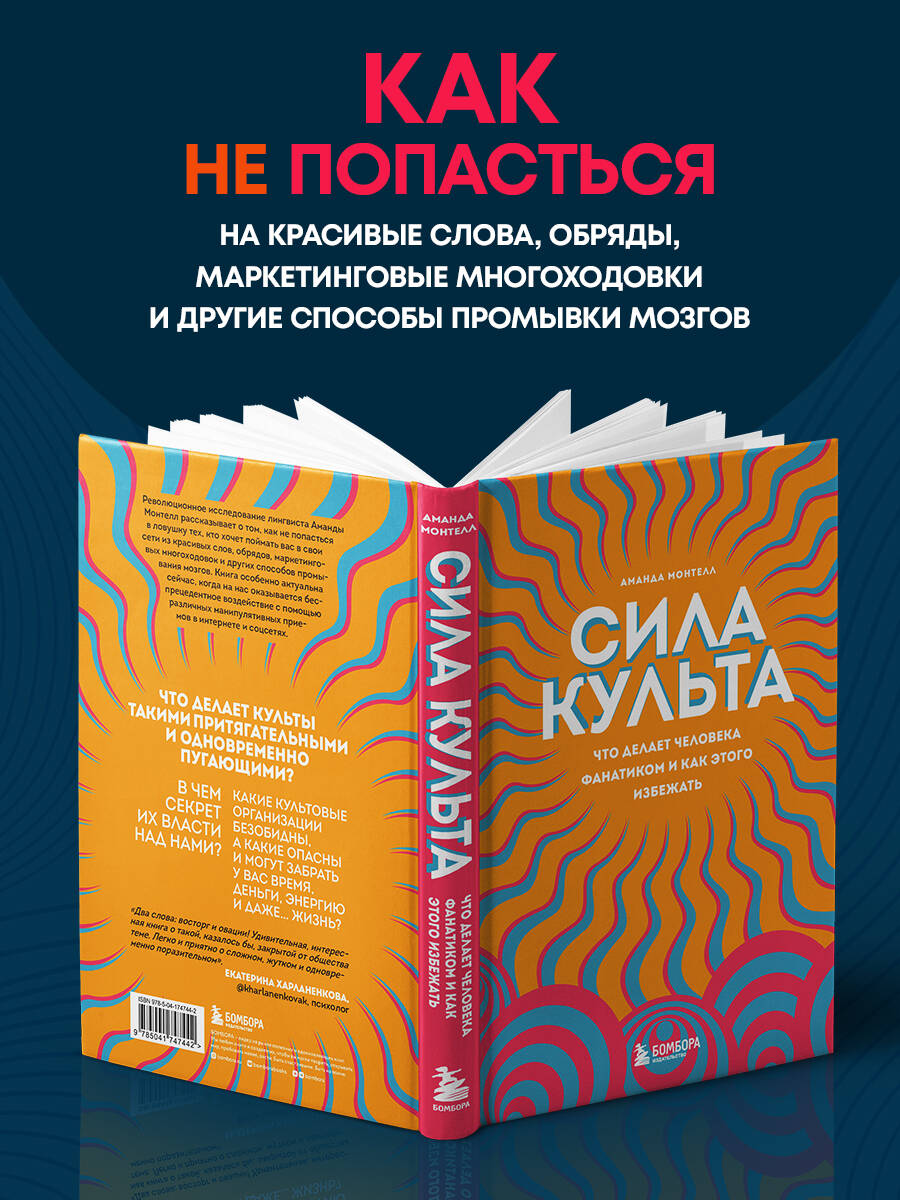 Что делает «культы» такими притягательными и одновременно пугающими? В чем секрет их власти над нами? Какие культовые организации безобидны, а какие опасны и могут забрать у вас время, деньги, энергию и даже… жизнь? Можете ли вы оказаться в их тисках? Лингвист Аманда Монтелл утверждает: да, в какой-то степени это уже со всеми нами случилось. Некоторые поют мантры в йога-студиях, кто-то предпочитает гаджеты или одежду определенных марок или выбирает себе гуру в соцсетях и каждый день поклоняется ему лайками и комментариями. Работая волонтером на телефонной линии спасения для юных самоубийц, автор из первых уст узнала, что язык, если его использовать определенным образом, способен помочь человеку выжить. И, наоборот, может подтолкнуть его к смерти... Революционное исследование Аманды Монтелл рассказывает о том, как не попасться в ловушку тех, кто хочет поймать вас в свои сети из красивых слов, обрядов, маркетинговых многоходовок и других способов промывания мозгов. Книга особенно актуальна сейчас, когда на нас оказывается беспрецедентное воздействие с помощью различных манипулятивных приемов в интернете и соцсетях. «Скрупулезный и революционный анализ того, как с помощью определенных словесных приемов можно убедить кого угодно в чем угодно. Язык, которым написана книга, так же харизматичен, как и те гуру, которых Аманда препарирует». - Молли Рингуолд, актриса и писательница| Издательство | ООО "Издательство "Эксмо" |