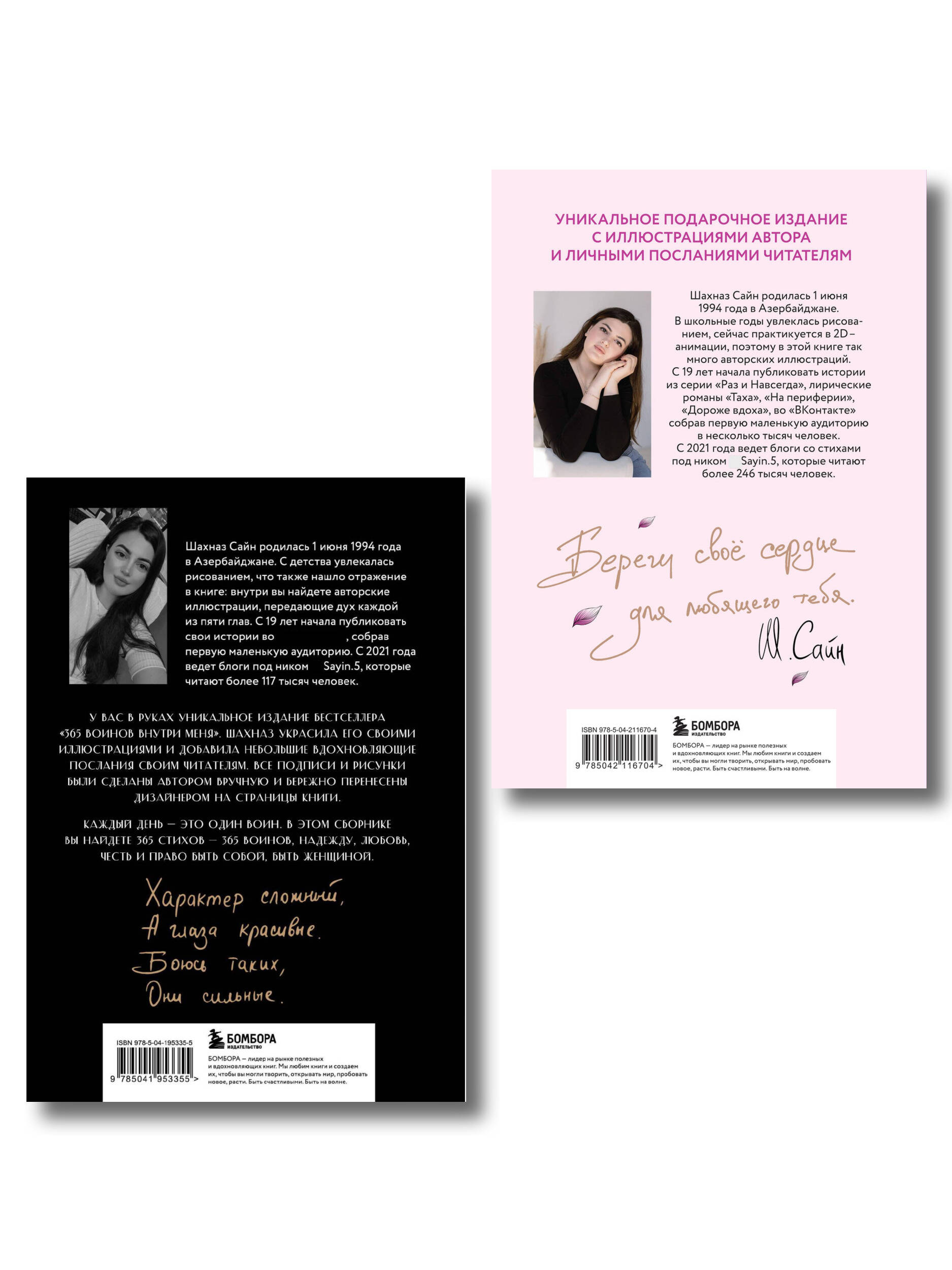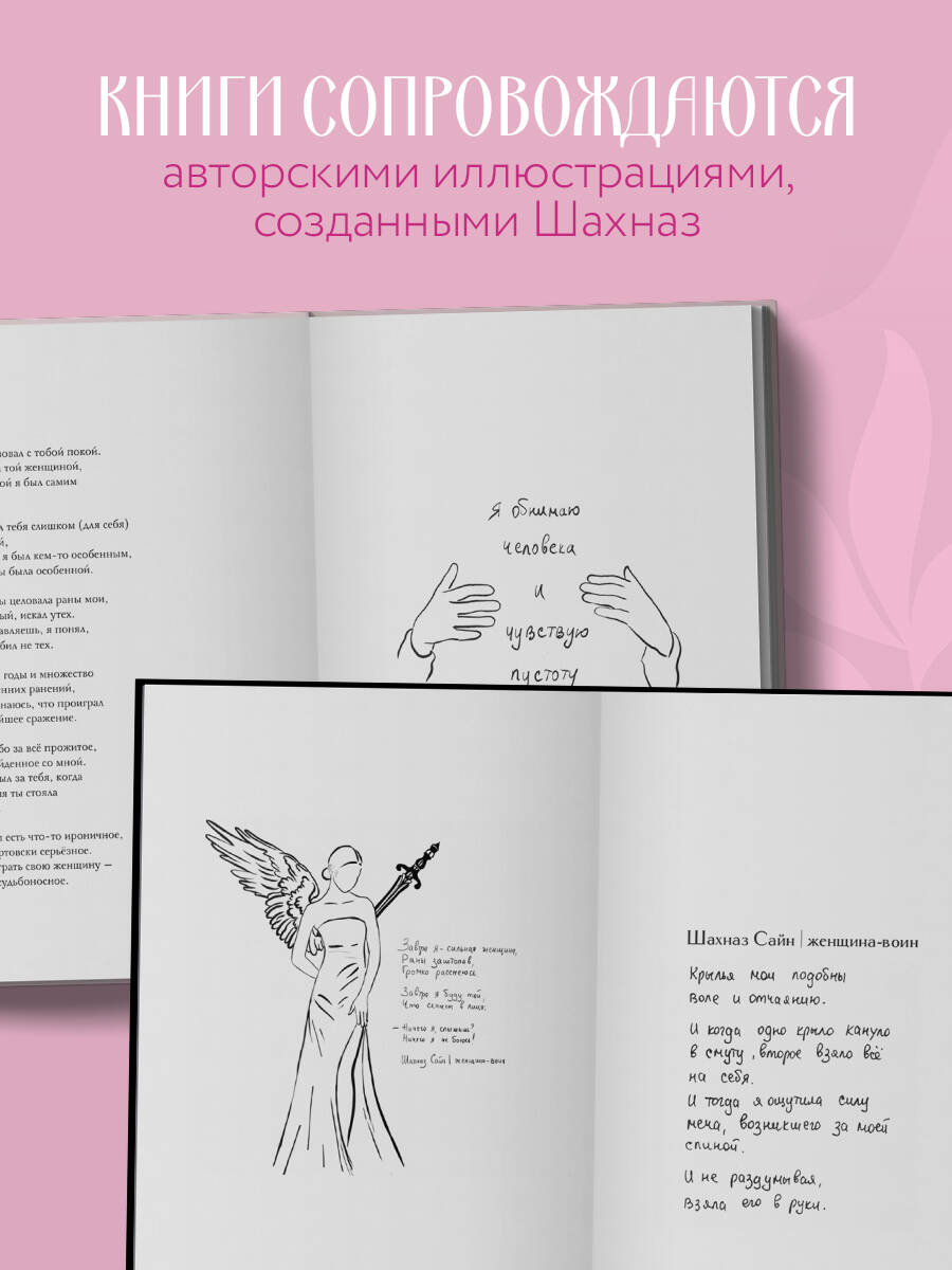 Сила любви, стойкость и путь к самоисцелению - всё это вы найдете в стихотворениях Шахназ Сайн! «365 воинов внутри меня» и «На минном поле расцвели сады» - поэтические сборники-бестселлеры молодой поэтессы Шахназ Сайн. Искренние стихотворения о надежде, справедливости и сложных отношениях между людьми помогут справиться с собственными эмоциями, сомнениями и переживаниями. Сборник «365 воинов внутри меня» содержит 365 стихов и цитат, объединенных простой идеей: каждый день - это один воин, который живет внутри каждого из нас и символизирует постоянную борьбу человека с самим собой и своими страхами. «На минном поле расцвели сады» - второй сборник поэтессы о душевных ранах и минных полях, которые обязательно покроются бескрайними садами, но только тогда, когда все мины будут найдены и обезврежены. Небольшие стихотворения напомнят о хрупкости счастья, дадут силу, чтобы справиться с жизненными невзгодами, и вернут веру в себя. Стихотворения сопровождаются уникальными авторскими иллюстрациями, бережно перенесенными дизайнером на страницы книг, и вдохновляющими посланиями для читателей. Обложки изданий украшены тиснением из фольги и печатью по обрезу. Поэтические сборники «Сила нежных стихов» станут отличным подарком для всех, кто ищет свет, любовь, ищет свой путь. «В мире, где так много жестокости, она стала его нежностью». Об авторе: Шахназ Сайн родилась 1 июня 1994 года в Азербайджане. В школьные годы увлекалась рисованием, что способствовало включению своих иллюстраций в книгу и, в дальнейшем, тяге к 2D-анимации. Впервые в юном возрасте выступив со своим стихотворением, она проложила дорогу творчества, связав себя не только со стихами, но и с историями. С 19 лет начала публиковать истории из серии «Раз и Навсегда», лирические романы «Таха», «На периферии», «Дороже вдоха» во «ВКонтакте», собрав первую маленькую аудиторию в несколько тысяч человек. С 2021 года ведет блоги со стихами под ником @sayin.5, которые читают более 250 тысяч человек.| Издательство | ООО "Издательство "Эксмо" |