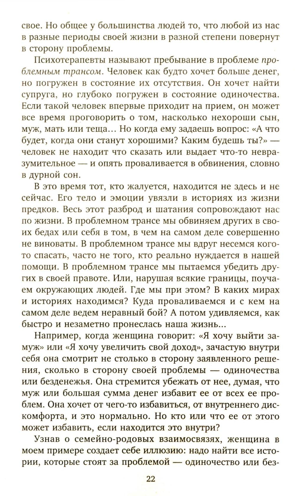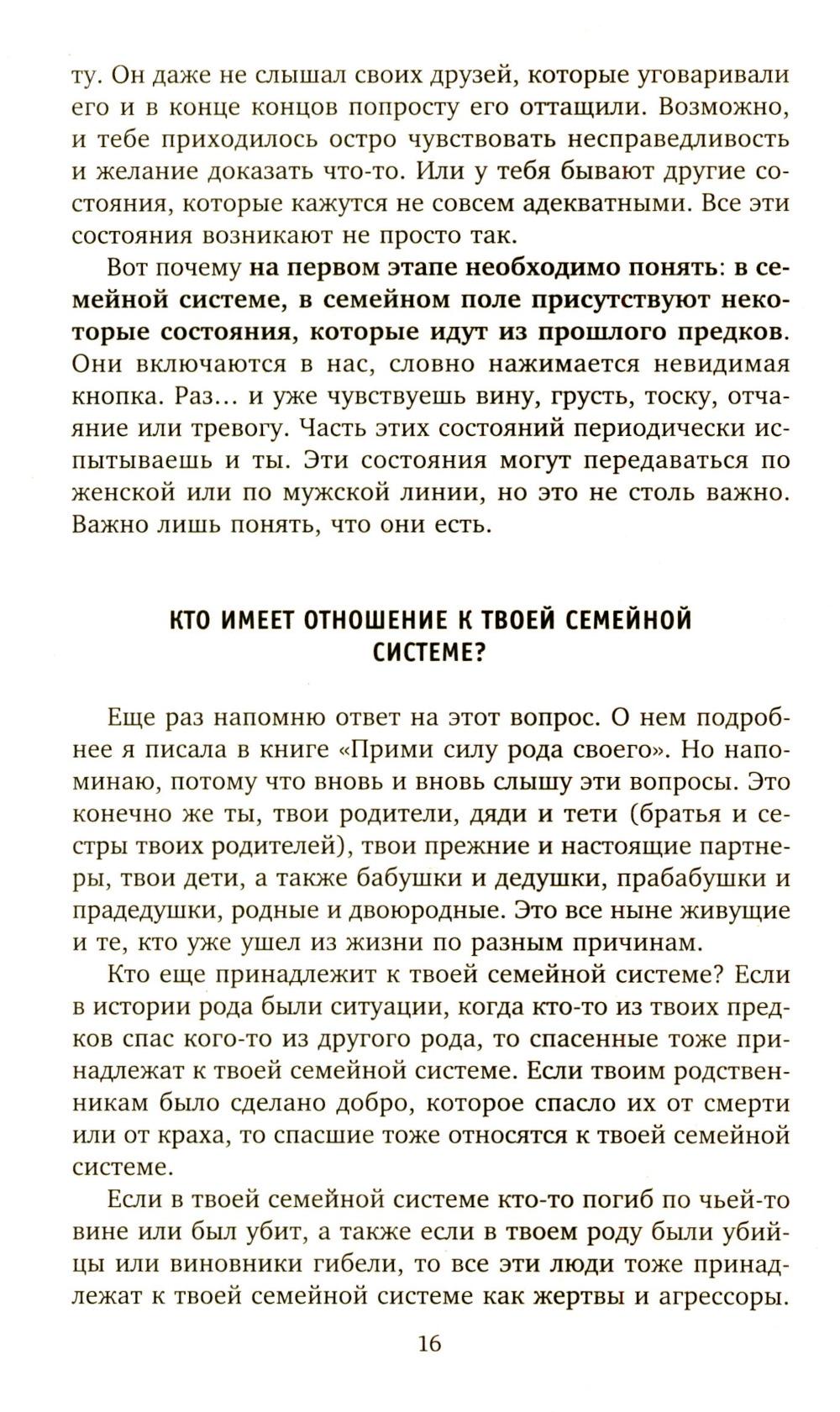 Перед вами третья книга Оксаны Солодовниковой, посвященная Силе рода и применению расстановок. Именно в этой книге автор обобщила все вопросы, заданные читателями, участниками тренингов и коучинга в течение последних трех лет.\r Автор предлагает практики, которые помогут разрешить многие ситуации в жизни. Именно эти практики откроют вам невидимый мир взаимосвязей с вашим родом. Они раскроют, откуда идут проблемы со здоровьем, в отношениях или с деньгами. Более того, с их помощью вы сможете проработать истории, в которые уходит ваша жизненная энергия, избавиться от повторения шаблонов поведения, идущих из семейно-родовой системы и мешающих идти к своим целям, создавать отношения, наполненные взаимопониманием и любовью. Первые шаги с книгой помогут вам получить поддержку, силу и даже помощь от своего рода, наполниться новыми силами для своей жизни, деятельности, открыть новые возможности и наслаждаться жизнью здесь и сейчас. Несмотря ни на что, жизнь продолжается дальше. И эта книга - первые шаги к тому, чтобы раскрасить ее в новые цвета и помочь сделать то же своим детям или другим людям.| Издательство | Центрполиграф |
