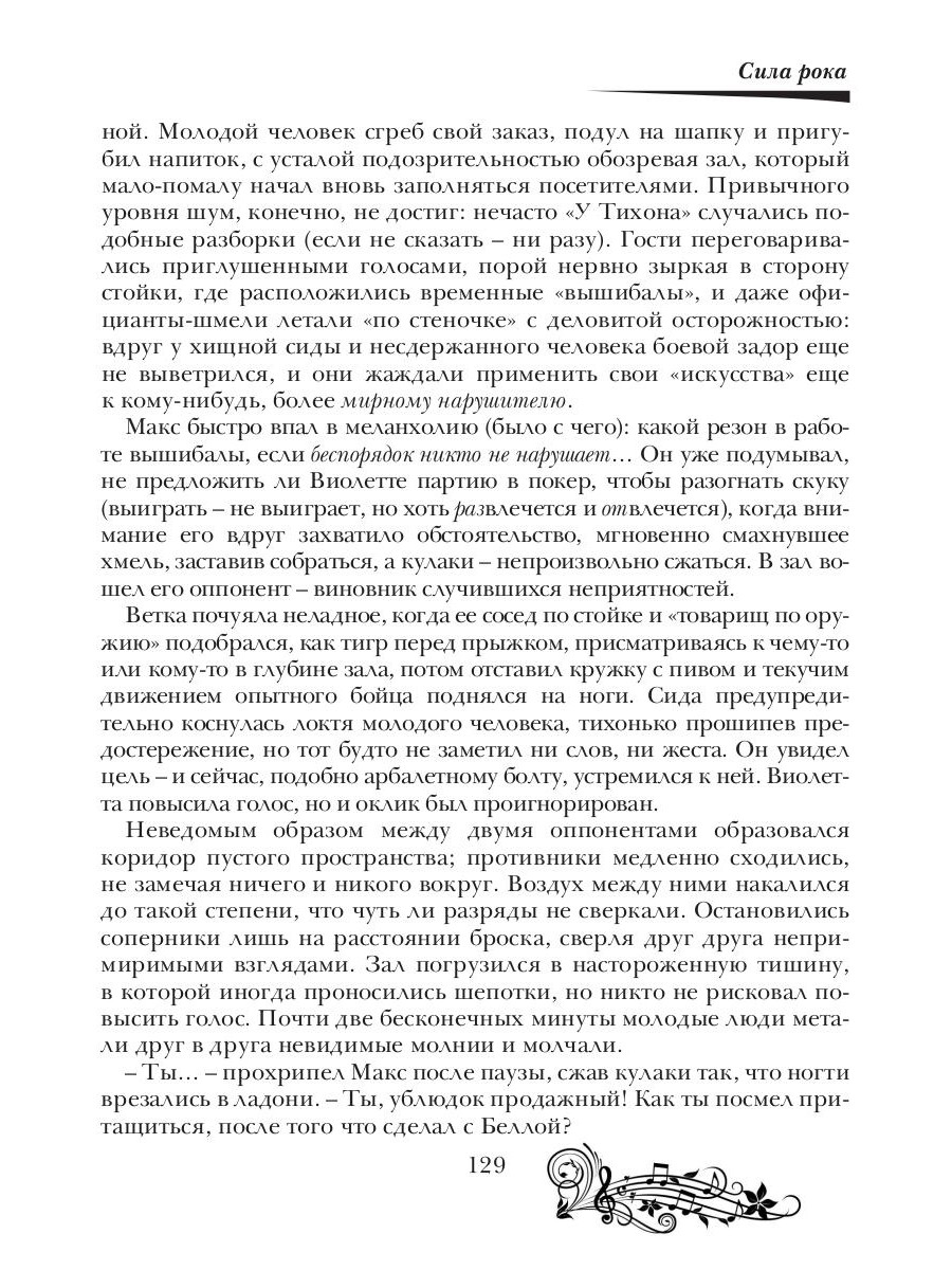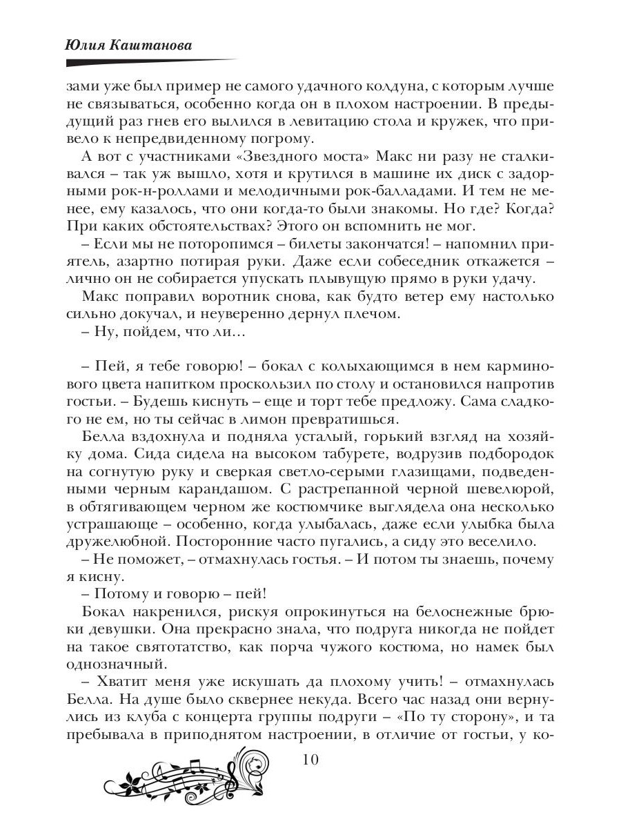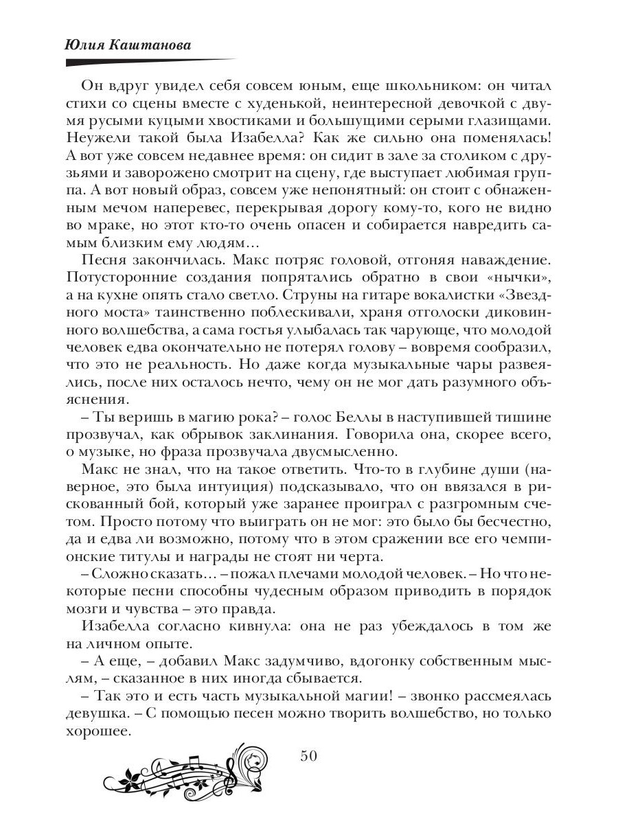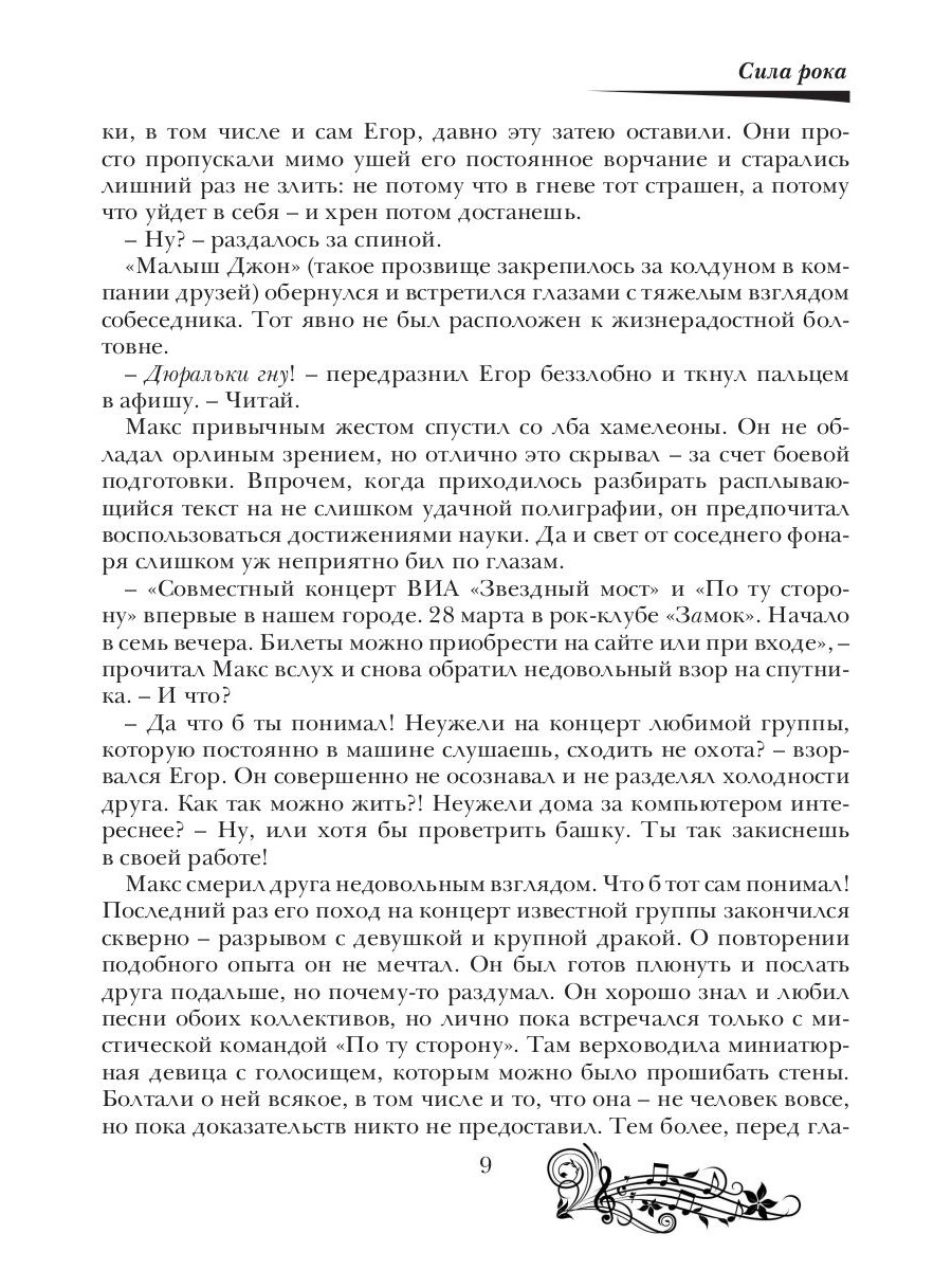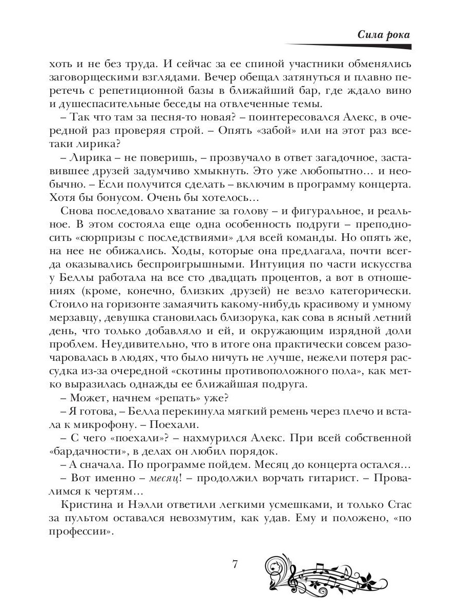 Древняя легенда гласит, что существуют две силы, которые способны творить невероятные чудеса - это любовь и музыка. Изабеллу, лидера и вокалистку известной рок-группы, судьба сводит на одном из концертов с давним знакомым, которого она не видела много лет. И никому - даже их мистическим друзьям: сиде Виолетте, колдуну Егору, оборотню-ша Кристине и владельцу волшебной таверны Арнару - неведомо, в какой запутанный клубок событий вовлечет их эта, на первый взгляд, случайная встреча… Куда заведет героев запретное чувство? Как повлияет на их судьбу таинственная магия рок-музыки? И будет ли у сказки счастливый финал…| Издательство | Т8 RUGRAM |