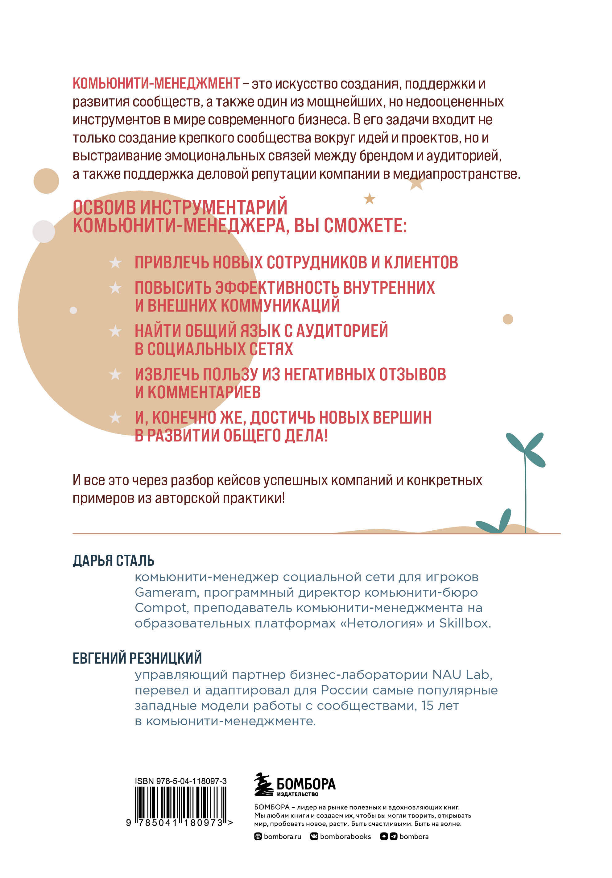 Комьюнити-менеджмент - один из самых мощных и в то же время недооцененных инструментов развития современного бизнеса. В его ключевые задачи входит не только создание крепкого сообщества вокруг идей и проектов, но и выстраивание эмоциональных связей между брендом и аудиторией, а также поддержка деловой репутации компании в медиапространстве. Освоив инструментарий комьюнити-менеджера, вы сможете: • привлечь новых сотрудников и клиентов; • повысить эффективность внутренних и внешних коммуникаций; • найти общий язык с аудиторией в социальных сетях; • извлечь пользу из негативных отзывов и комментариев; • и, конечно же, достичь новых вершин в развитии общего дела! И все это через разбор кейсов успешных компаний и конкретных примеров из авторской практики! ДАРЬЯ СТАЛЬ - комьюнити-менеджер социальной сети для игроков Gameram, программный директор комьюнити-бюро Compot, преподаватель комьюнити-менеджмента на образовательных платформах «Нетология» и Skillbox. ЕВГЕНИЙ РЕЗНИЦКИЙ - управляющий партнер бизнес-лаборатории NAU Lab, перевел и адаптировал для России самые популярные западные модели работы сообществами, 15 лет в комьюнити-менеджменте.| Издательство | ООО "Издательство "Эксмо" |
