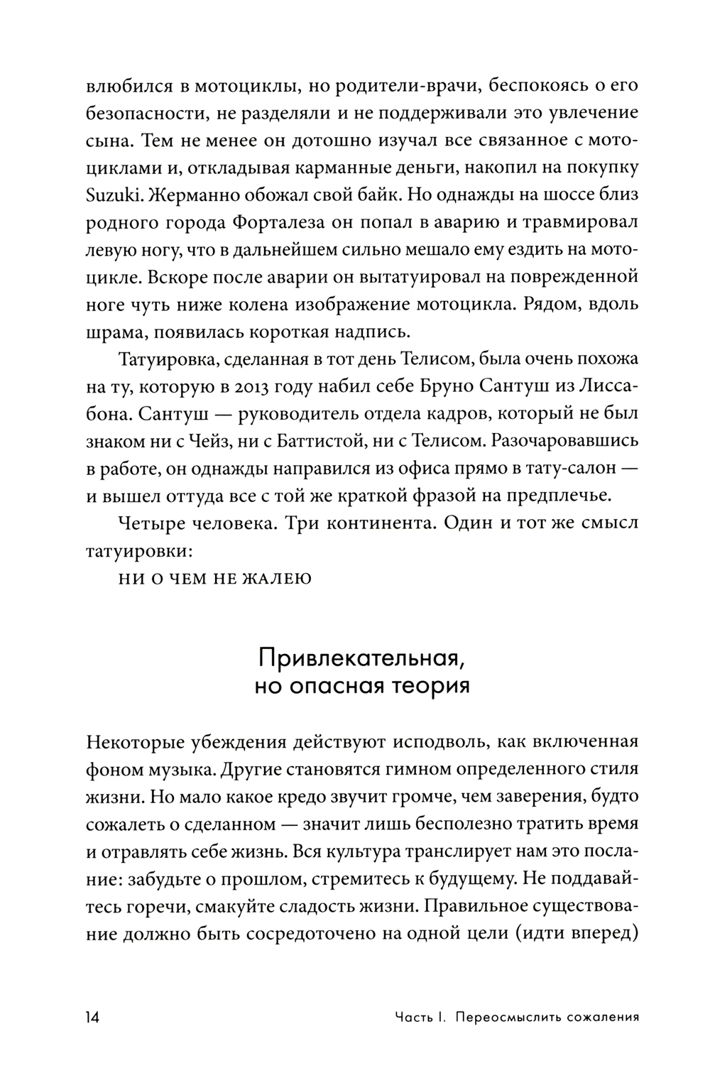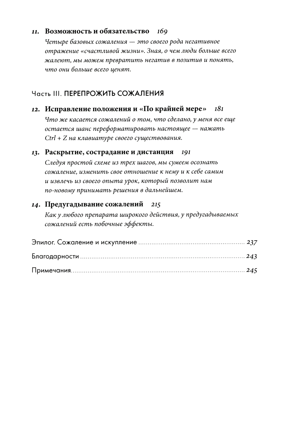 «Жить надо так, чтобы ни о чем не жалеть». Согласны? Многие люди избегают сожалений, и в этом их поддерживает современная культура успеха. Но оправдан ли такой подход? Ведь все мы о чем-то жалеем: о поступках или неосторожно сказанных словах, об ошибках или упущенных возможностях. Автор бестселлера «Драйв» писатель и журналист Дэниел Пинк предлагает переосмыслить и принять это чувство. Опираясь на современные исследования в области нейронаук и социальной психологии, в своей новой книге он развенчивает миф о вреде сожалений и предлагает не отворачиваться от негативного опыта, а научиться извлекать из него уроки, чтобы двигаться вперед. О чем бы вы ни сожалели, при правильном подходе эти воспоминания будут придавать вам энергию, а не забирать ее, позволят разобраться в себе и стать сильнее.
