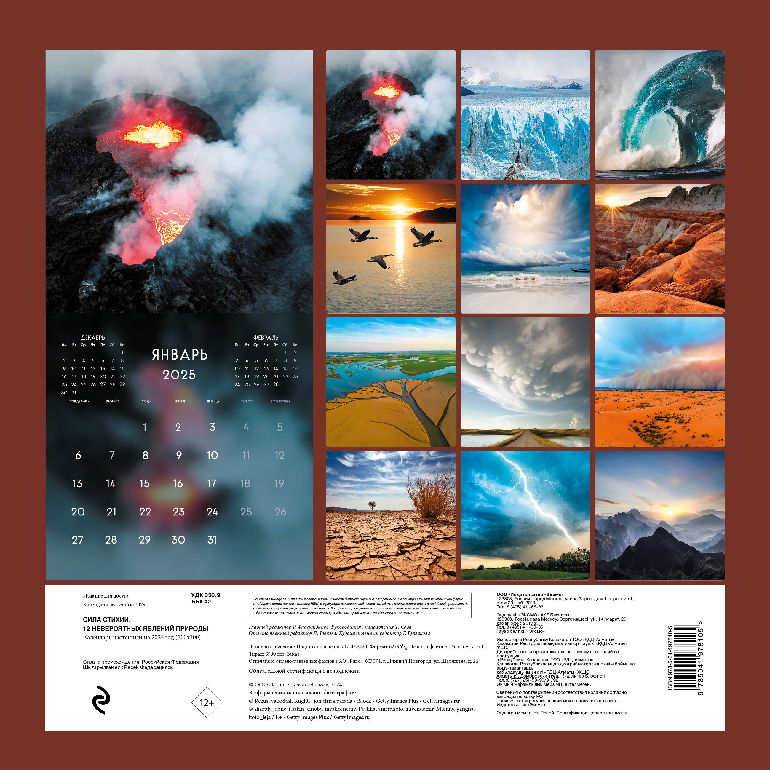 Аннотация: Сила стихии. 12 невероятных явлений природы. Календарь настенный на 2025 год (300х300 мм)
