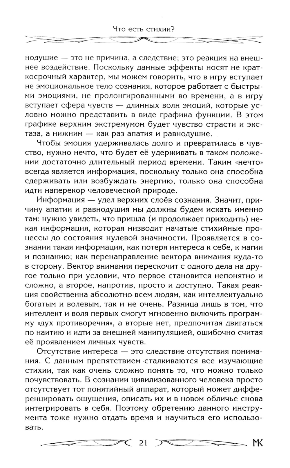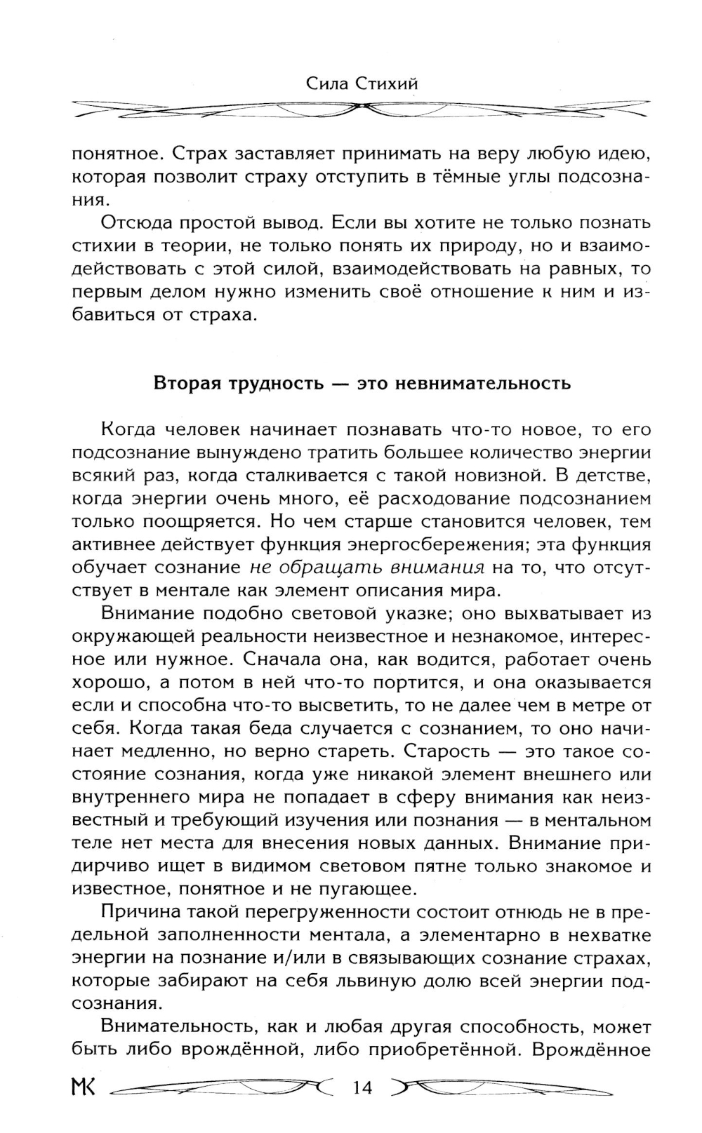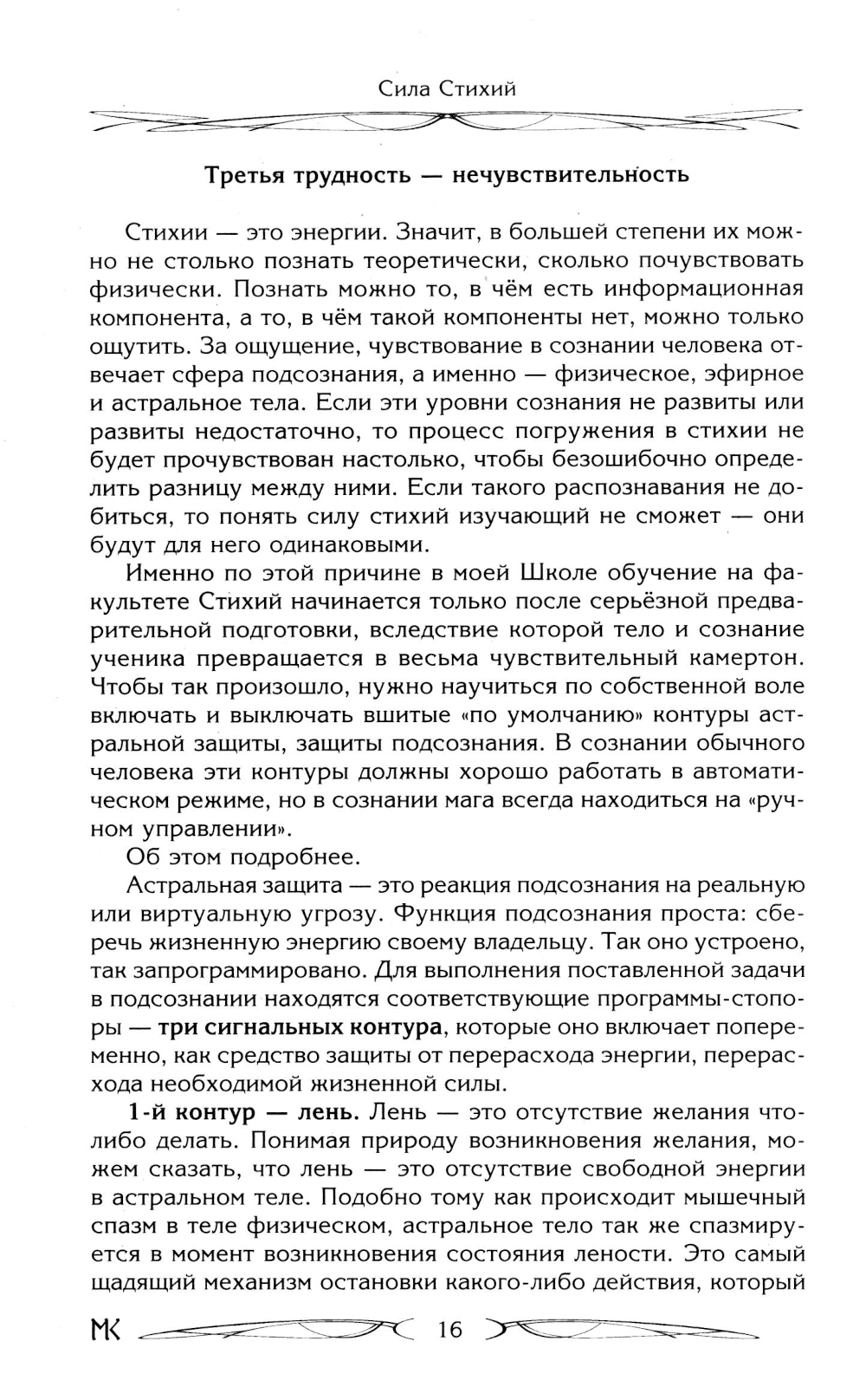 С понятием стихий мы знакомы с детства. Земля, по которой ходим, огонь, что согревает, вода, которую пьём, и воздух, которым дышим, так же естественны для восприятия, как и то, что всё перечисленное есть основание для жизни. К естественному быстро привыкаешь и перестаёшь замечать удивительные вещи, которые делают человека живым, а ощущение жизни реальным... Однако цель этой книги совсем не в том, чтобы убедить вас в очевидности состояния «жизнь» или необходимости беречь природу. Цель в том, чтобы рассказать вам о стихийных силах в оккультном, магическом смысле, раскрыть их истинную суть. Каждый может прийти в мир с набором прав, но может и бесправным. Единственное, что у каждого человека есть как базис, как основа формирования любых прав, это Сила Стихий. Даже совершенно бесправный человек может поднять себя до невероятных высот, если научится работать со стихийными силами. Познание стихийных сил это познание своей настоящей природы. Это познание природы мира, в котором живёт человек, природы истинной, изначальной. Познание ведёт к пониманию, а понимание даёт контроль. Контроль над своей природой это первый шаг к постижению великого искусства магии.| Издательство | Центрполиграф |