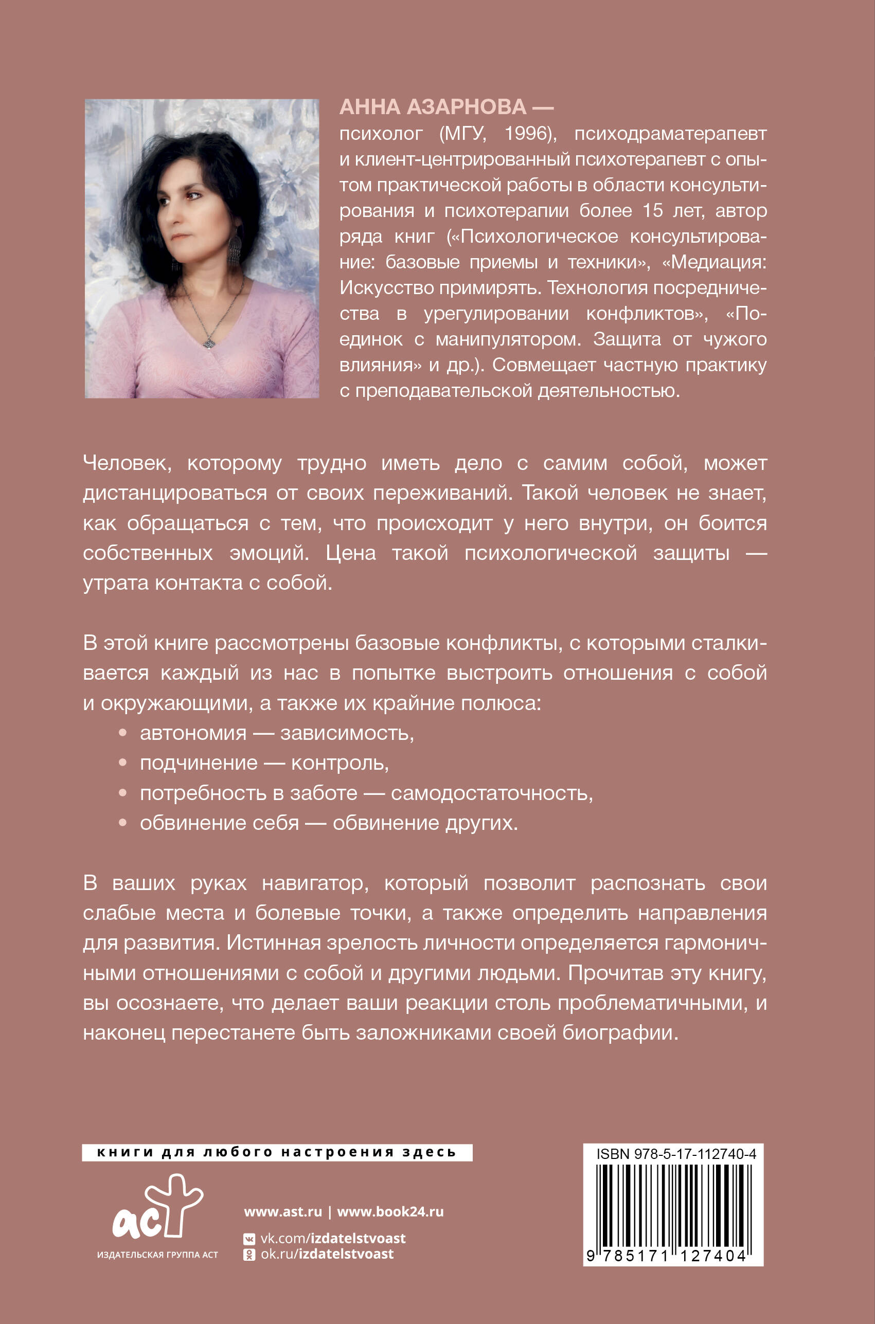 «Сила внутри. Как преодолеть негативные сценарии» призвана помочь читателю разобраться в себе и лучше понять тех, кто его окружает, - собственного ребенка, партнера, коллегу, просто знакомого. Эта книга психолога и психотерапевта Анны Азарновой поможет посмотреть на внутренние процессы человека с точки зрения того, как именно человек обращается с самим собой. Издание может стать вашим инструментом самодиагностики и помочь увидеть уязвимые места в собственной душе и психике. Книга дает возможность понять, необходима ли нам помощь психотерапевта и в связи с чем именно.