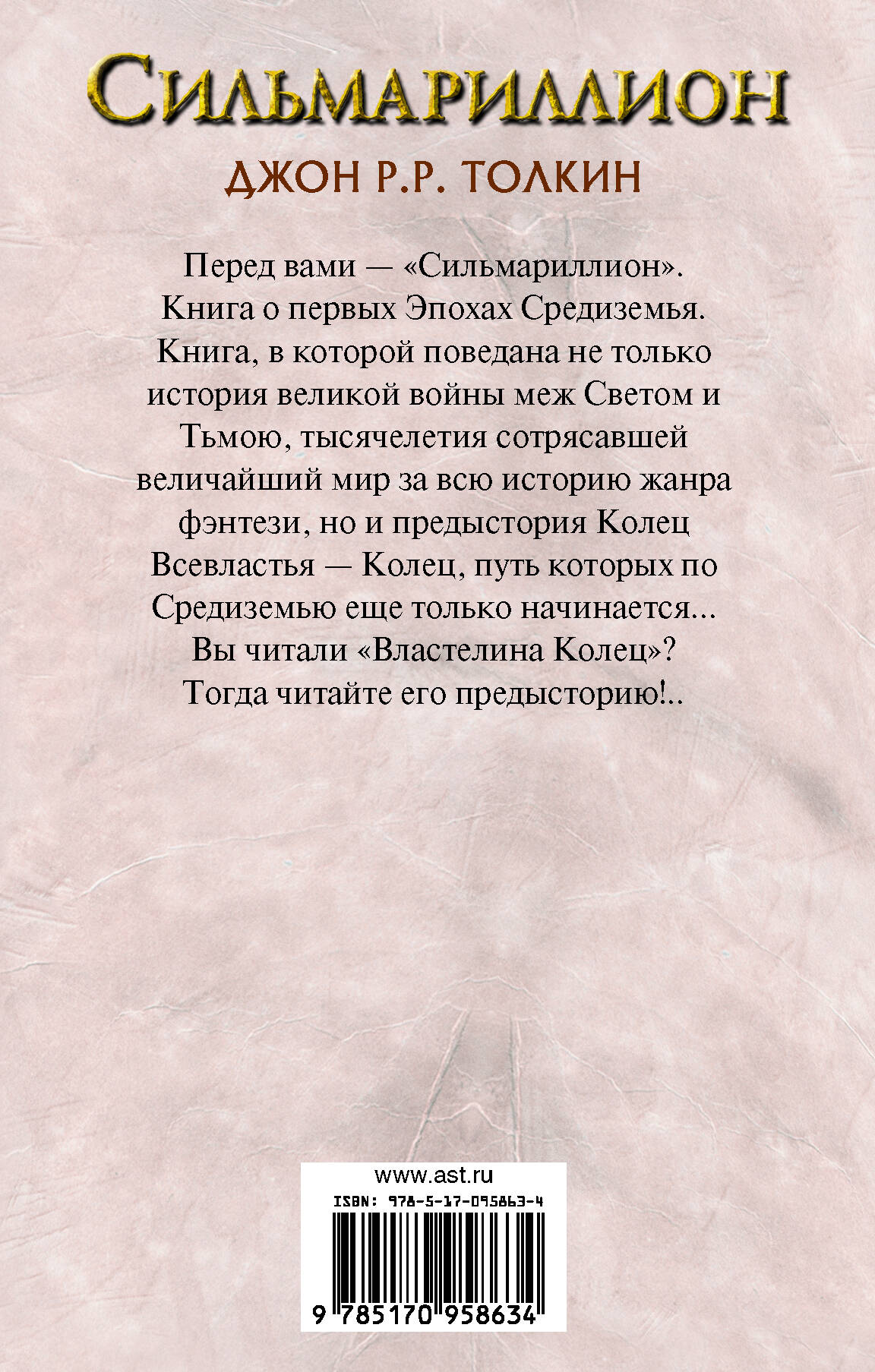 Перед вами - "Сильмариллион". Книга о первых Эпохах Средиземья. Книга, в которой поведана не только история великой войны меж Светом и Тьмою, тысячелетия сотрясавшей величайший мир за всю история жанра фэнтези, но и предыстория Колец Всевластья - Колец, путь которых по Средиземью еще только начинается... Вы читали "Властелина Колец"? Тогда читайте его предысторию!..| Издательство | АСТ |