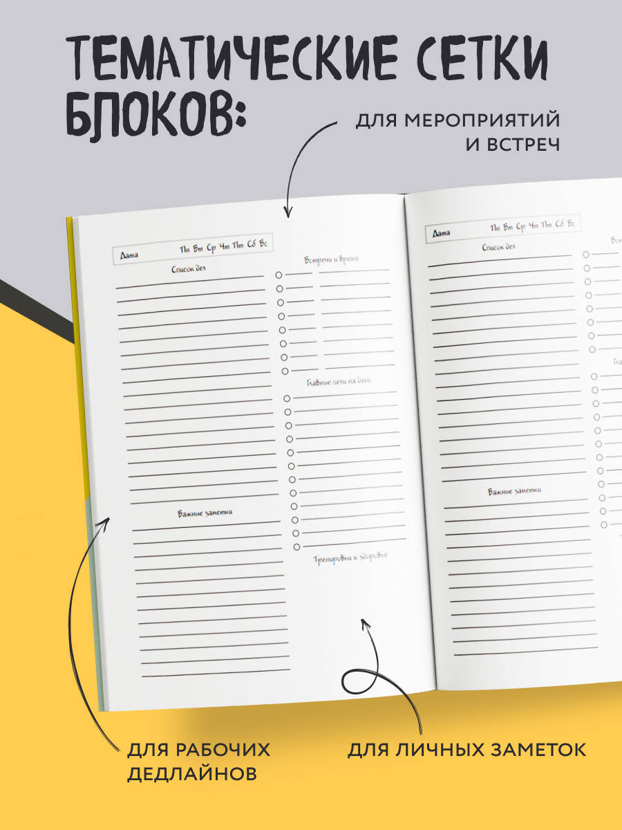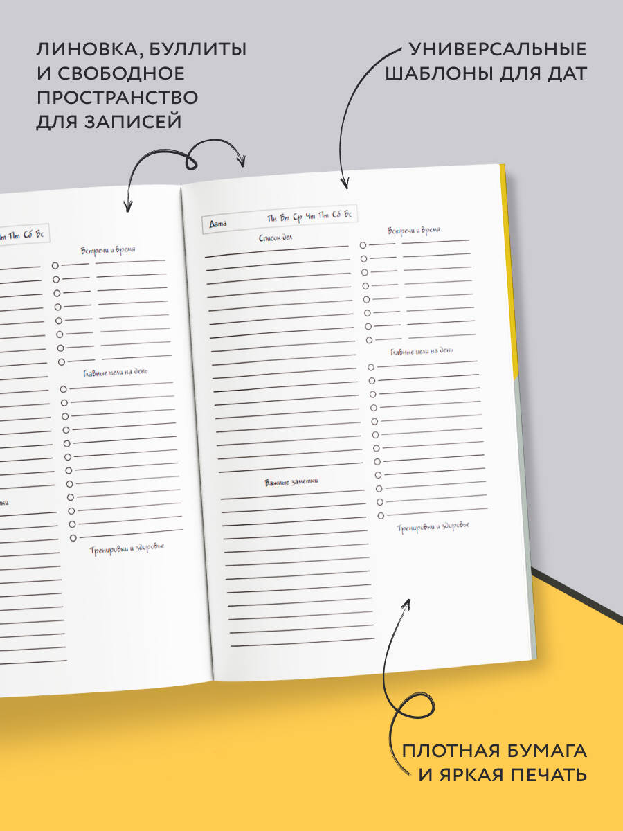 Выгораете от дедлайнов? Хаос расписания и нехватка ресурса больше не диктуют правила - теперь вы управляете временем! Представляем линейку стильных ежедневников. Каждый из них - ваш персональный ассистент, который поможет справиться с любой задачей, распланировать все дела и прокачать личную продуктивность. Преимущества: - Обложки выполнены с учетом индивидуальных вкусов каждого: от лаконичного минимализма до дерзких принтов. Общее у них лишь одно - стиль. - Толщина блока разработана с учетом ваших требований. Вы можете как брать ежедневник с собой, так и работать с ним в офисе. - Белая плотная бумага внутри - не бликует, не просвечивает, выдерживает даже маркерные хайлайтеры. - Сетка блока создана с учетом современных тенденций европейского дизайна: часть распределена по времени - для рабочих дедлайнов, часть - линейки, которые можно использовать как для личных заметок, так и для планирования рабочих задач. Технические параметры: - Формат: А5 (138х200 мм). - Обложка: интегральная. - Вид скрепления: шитье нитками. - Блок: офсет 80 гр. - 72 л. Думайте. Планируйте. Достигайте. Выбирайте лучшее!| Издательство | ООО "Издательство "Эксмо" |