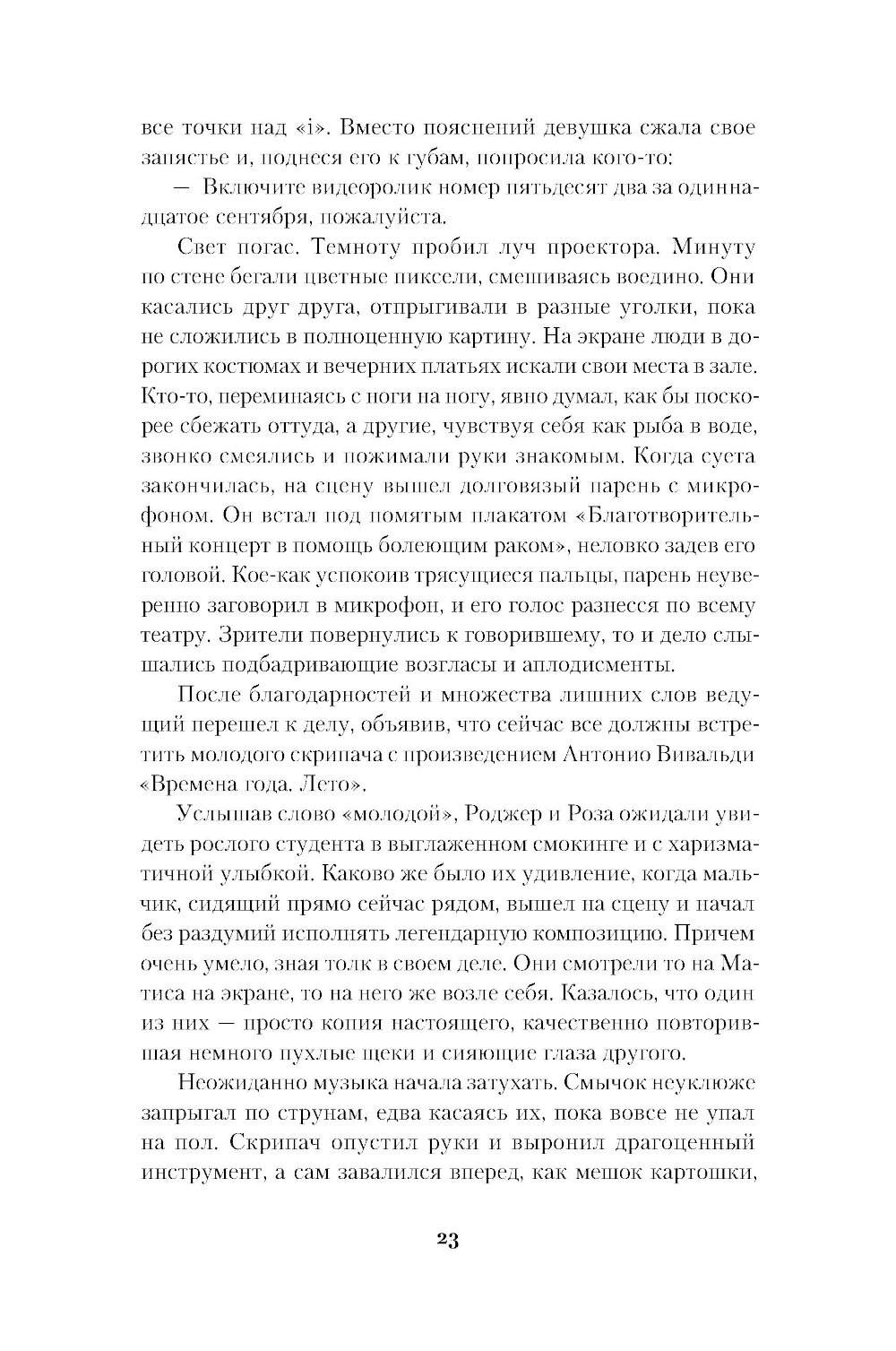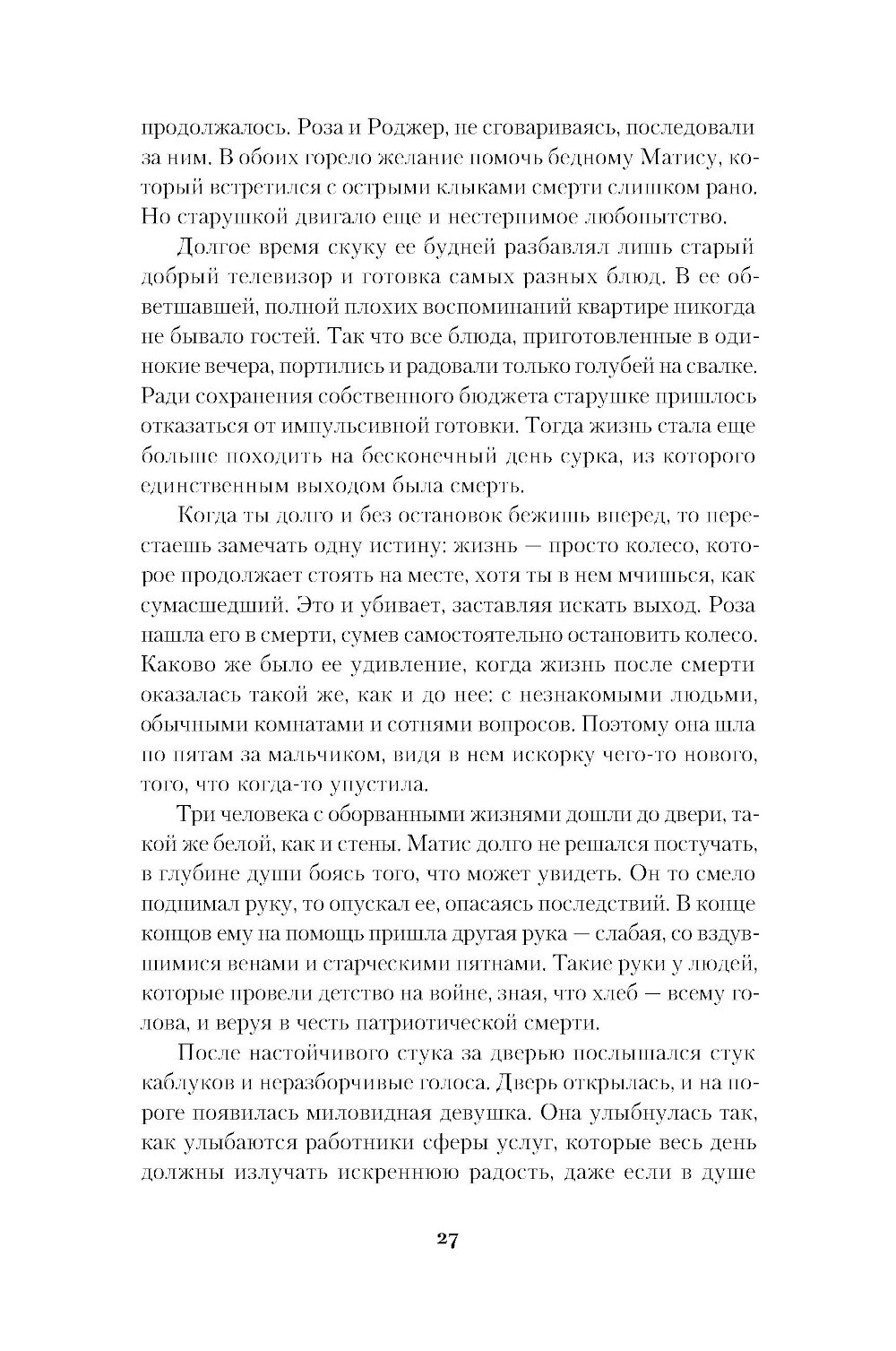 Меланхоличная старушка, талантливый пацан и до боли скучный мужчина умирают в один день - 11 сентября 2001 года. Никому из них не было предначертано погибнуть именно сегодня, так что теперь им предстоит побороться за свое завтра. Загробный мир отправляет их на два испытания, где и решится, кто из троих вернется обратно. Герои делятся своими историями, мечтами и сожалениями, и заставляют задуматься, а кто из них на самом деле заслуживает второго шанса на жизнь?| Издательство | Zerde Publishing |
