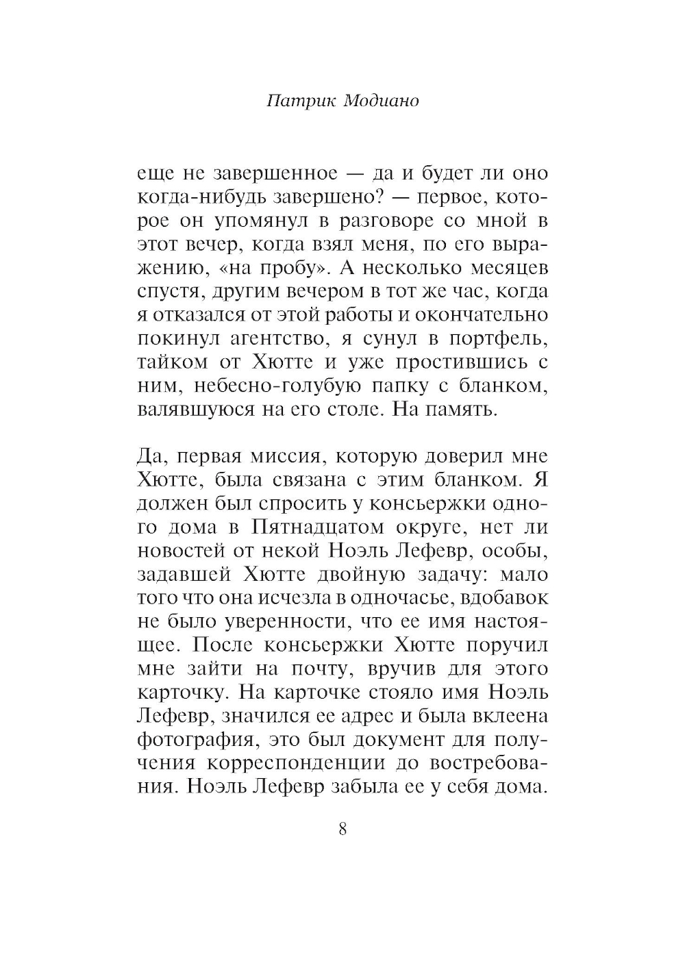 | Автор/составитель | Модиано Патрик |