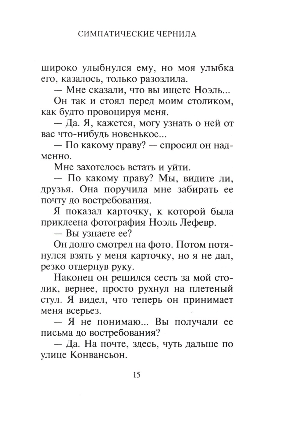 Нобелевский лауреат Патрик Модиано остается верен своей музе по имени Память. В новом романе писатель Жан - альтер эго автора - снова ищет в Париже, былом и сегодняшнем, незнакомку из прошлого. Однако в отличие от прежних книг Модиано «Симпатические чернила» построены как классический детектив с неожиданной развязкой. И писатель на сей раз расширяет горизонты: поиск, начавшийся в Париже, приведет героя в Вечный город, где и ждет читателя разгадка этой почти детективной истории.| Издательство | Текст |