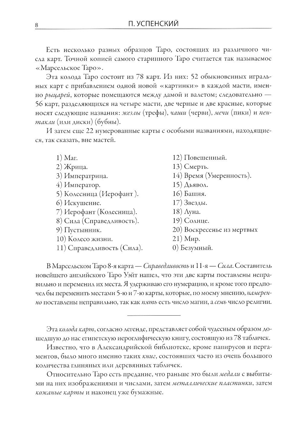 Сборник включает произведения известного философа, писателя, журналиста, путешественника и специалиста по эзотерике Петра Демьяновича Успенского (1878-1947), трудами о четвертом измерении которого зачитывались художники и философы начала XX века :«Символы Таро. Философия оккультизма в рисунках и числах» и «Разговоры с дьяволом. Оккультные рассказы». Книга интересна всем, кто интересуется не только картами Таро или символизмом, но и философскими вопросами жизни.| Издательство | СЗКЭО |