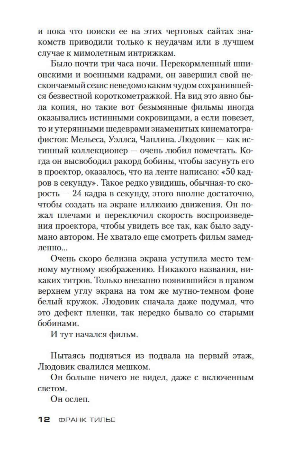 Коллекционер старых кинофильмов приобретает раритетную кинопленку и во время просмотра внезапно слепнет. Он звонит своей бывшей подруге, лейтенанту полиции Люси Энебель, с просьбой о помощи, и Люси с головой погружается в расследование странного происшествия. Что спрятано за этими черно-белыми кадрами? И почему за лентой охотятся неизвестные? Поиски заходят в тупик, и Люси в свою очередь обращается за помощью - к комиссару Шарко, опытному аналитику. По мере расследования история создания кинопленки обрастает невероятными подробностями. Похоже, одна и та же тайна скрыта в трущобах Каира и сиротском приюте в Монреале...| Издательство | Азбука |