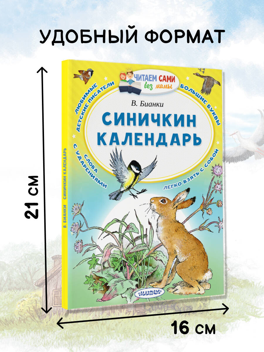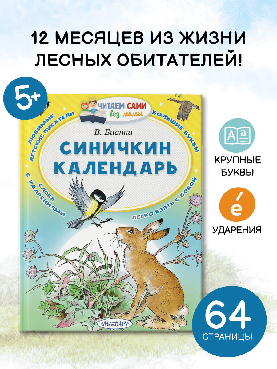 Хочешь узнать о том, как живут лесные жители весь год? Тогда открывай эту книгу и вместе с синичкой Зинькой отправляйся в лес! Ты увидишь жизнь животных и растений в каждый из двенадцати месяцев года, а весёлая Зинька познакомит тебя со своими друзьями-зверями. Прекрасная познавательная сказка писателя- натуралиста В.Бианки, великолепные иллюстрации знаменитых художников Э. Булатова и О. Васильева, удобный формат и ударения в словах сделают "Синичкин-календарь" твоей самой любимой книжкой!| Издательство | ИЗДАТЕЛЬСТВО "АСТ" |