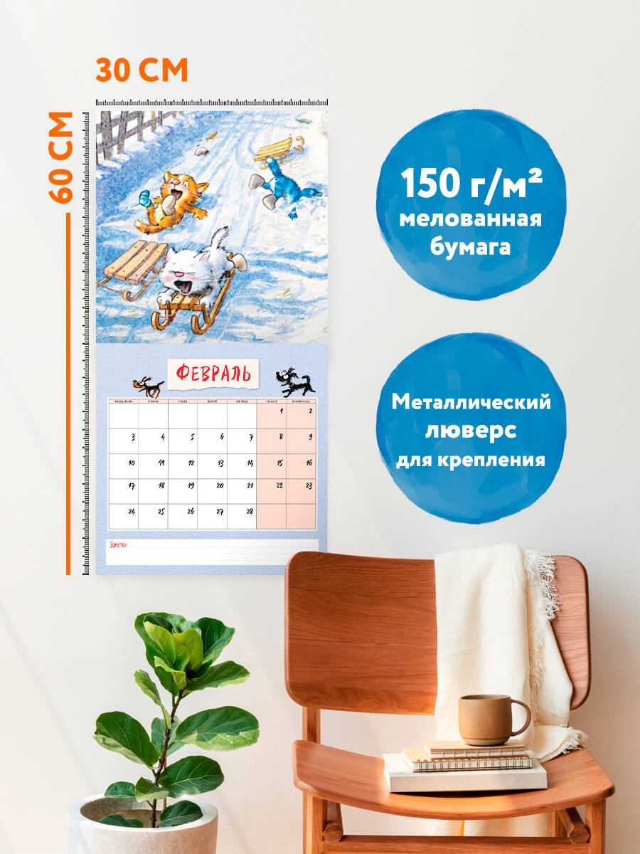 О серии: Наши настенные календари отличаются высоким качеством исполнения! Тщательно подобранные иллюстрации, напечатанные на глянцевой бумаге высочайшего качества, станут настоящим украшением дома, а в календарной сетке найдется место для ваших планов: большие клетки позволят делать записи и организовать свой год! В календаре также отмечены все государственные праздники. О календаре: Забавный милый календарь с зарисовками из жизни многодетной семьи знаменитых Синих Котов, завоевавших любовь тысяч поклонников в различных интернет-сообществах. Рина Зенюк - минская художница, герои ее рисунков - веселые и серьезные, решительные, мечтательные, очень упитанные коты синего цвета - понравятся не только заядлым любителям котиков, но и тем, кто до этого был к ним равнодушен. Свой жанр художница определяет как «котизм». Синие коты гарантированно дарят хорошее настроение и не оставят равнодушным никого! Для кого: Для всех поклонников творчества Рины Зенюк и ее замечательных синих котов! Технические параметры: - Тип календаря - настенный перекидной. - Год - 2025. - Календарная сетка - с разбивкой по месяцам. - Вид скрепления - скрепка. - Ширина - 30 см. - Высота - 30 см. - Внутренний блок - мелованная бумага 115 г/м2. - Подложка - плотный гофрокартон для поддержания формы. - Индивидуальная упаковка в плотный целлофановый пакет.| Издательство | ООО "Издательство "Эксмо" |