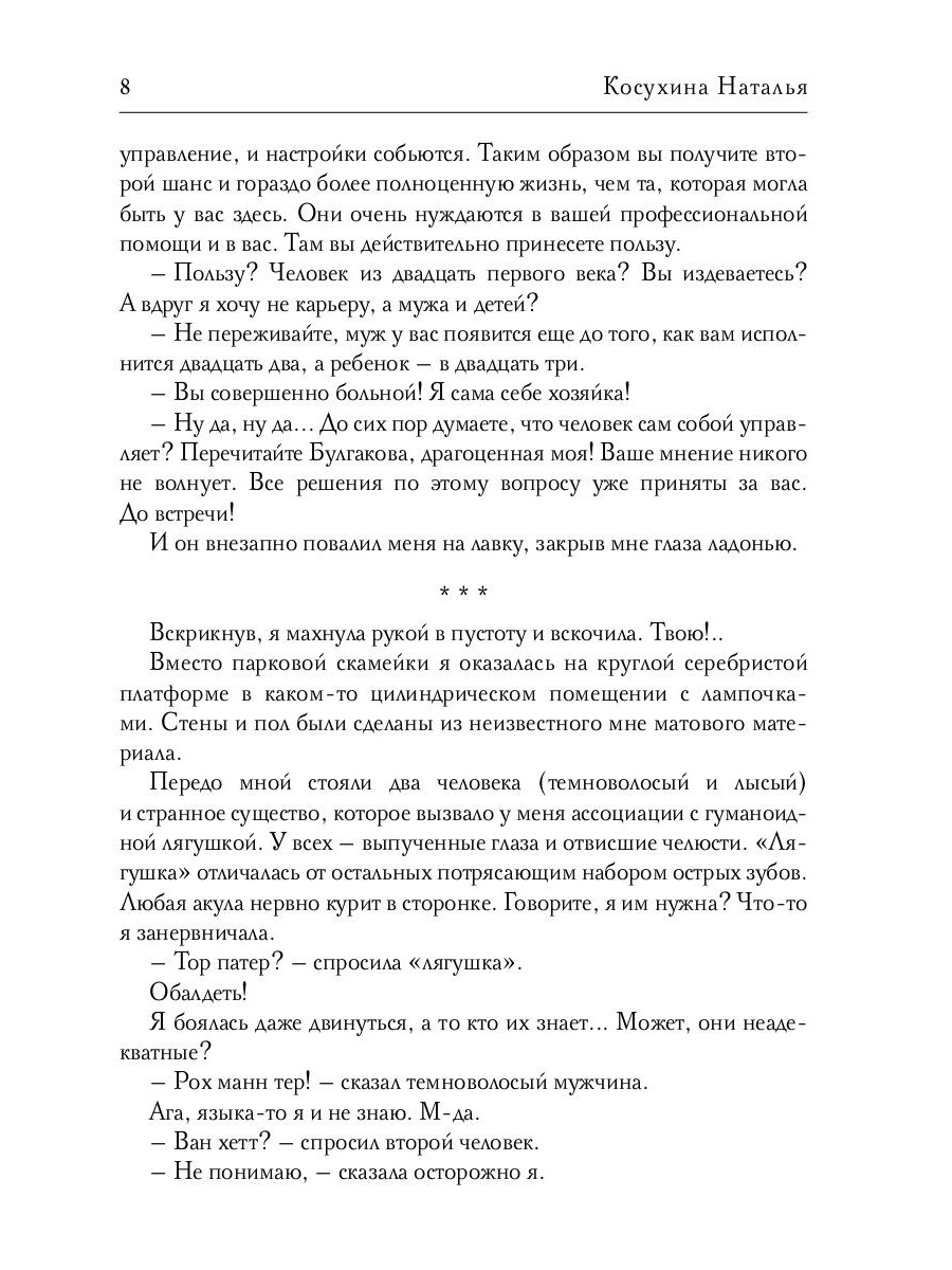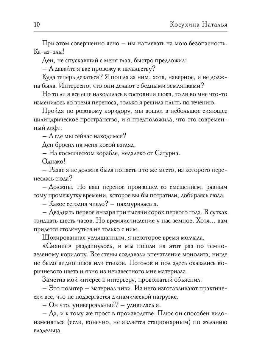 Волей неведомых сил студентка Мария Кудрявцева заброшена в трехтысячный год на космическую станцию на орбите Сатурна. Однако предприимчивая русская девушка сумеет с успехом реализовать себя и в далеком будущем, среди представителей самых причудливых звездных рас! А на ее руку и сердце претендует синий и хвостатый инопланетянин Александр Уотерстоун - весьма импозантный и обаятельный, но слишком самоуверенный и властный мужчина. Смогут ли два непохожих существа найти общий язык? И какой будет эта любовь среди звезд?| Издательство | Т8 RUGRAM |