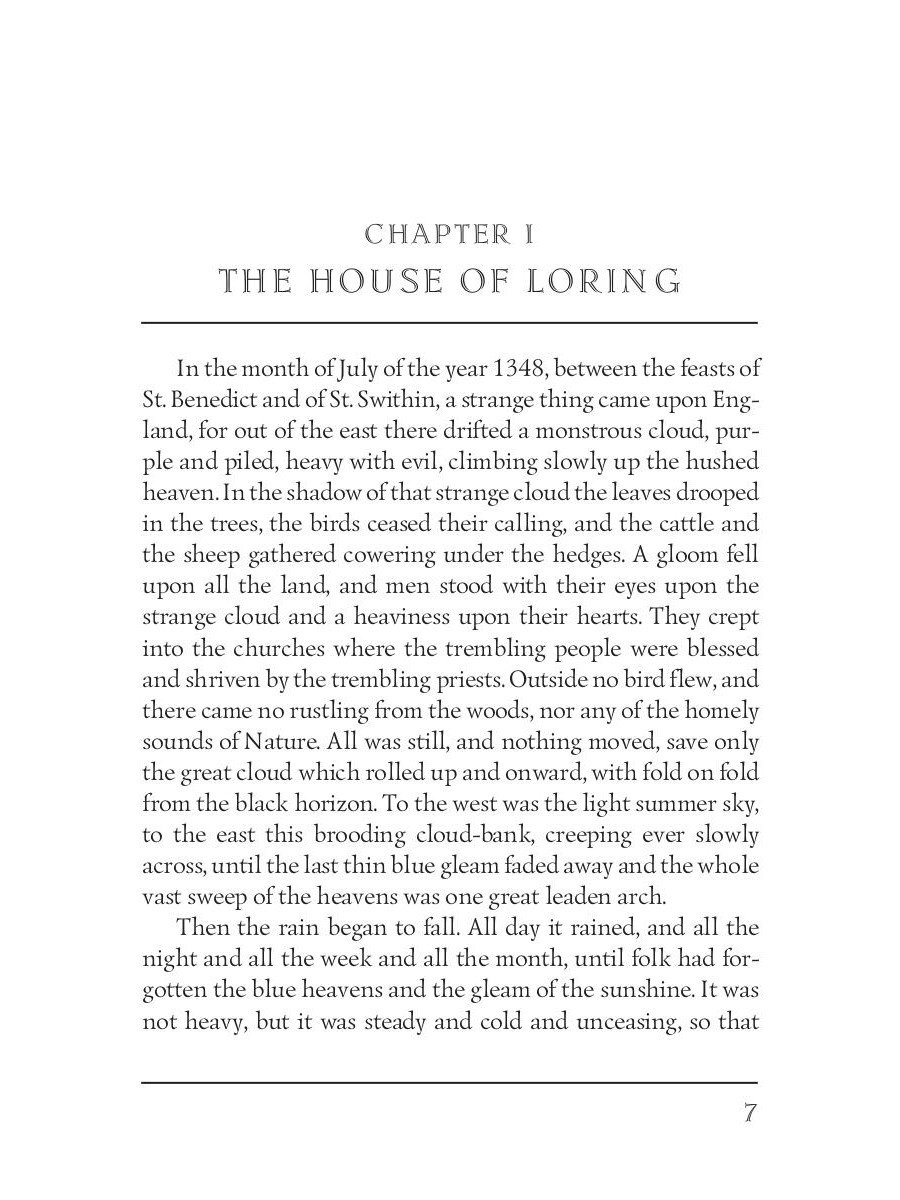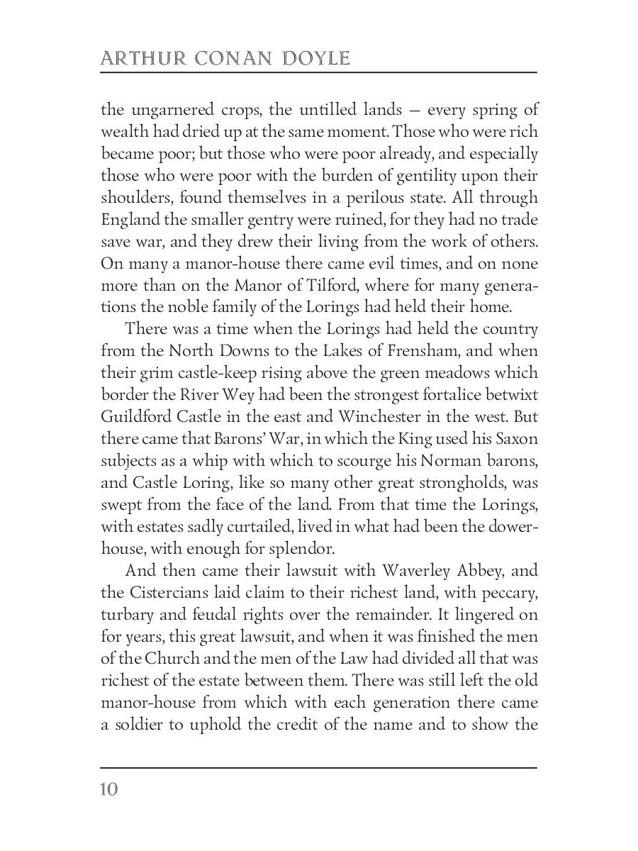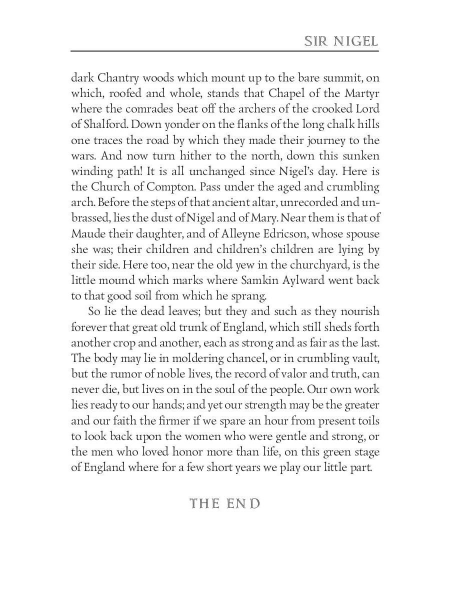 Arthur Conan Doyle (1859-1930) was an English writer best known for his detective stories about Sherlock Holmes. "Sir Nigel" is a historical novel set during the early days of the Hundred Years' War. As a background story to his book "The White Company", it describes the early life of Sir Nigel Loring in the service of King Edward III at the start of the war.