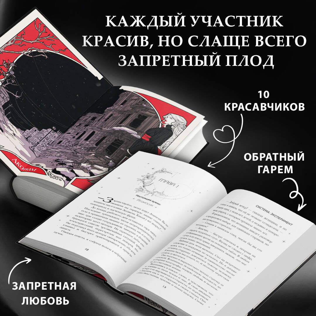 Притягательная история о девушке, которая становится участницей таинственного любовного эксперимента! Ей предстоит завоевать одного из десяти красавчиков. Но ее телохранитель, отношения с которым запрещены, заставит трепетать не только сердце героини, но и ваше! Внутри книги вас ждет: необычный авторский мир, фэнтези с перчинкой, обратный гарем, запретная любовь и головокружительные приключения! Система: «Эксперимент - это если бы в "Голодных играх" главным призом была любовь!» Внутри вы найдете бонусные главы от Сии Тони, которые написаны специально для бумажного издания, а также цветные форзацы. Кроме того, в каждом экземпляре вас ждет открытка с артом и пожеланием от автора! Обложка от иллюстратора Sonya Karpi.