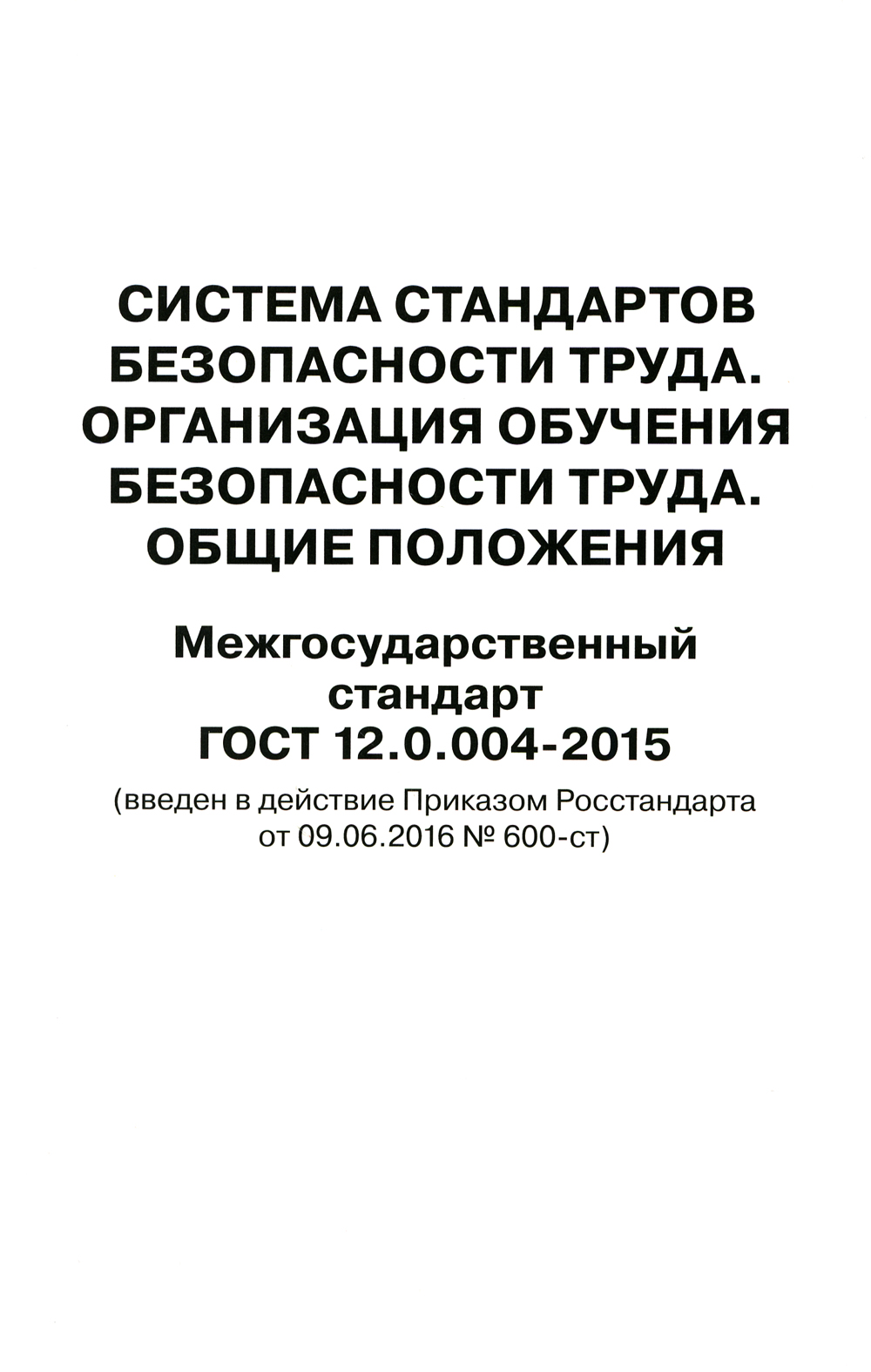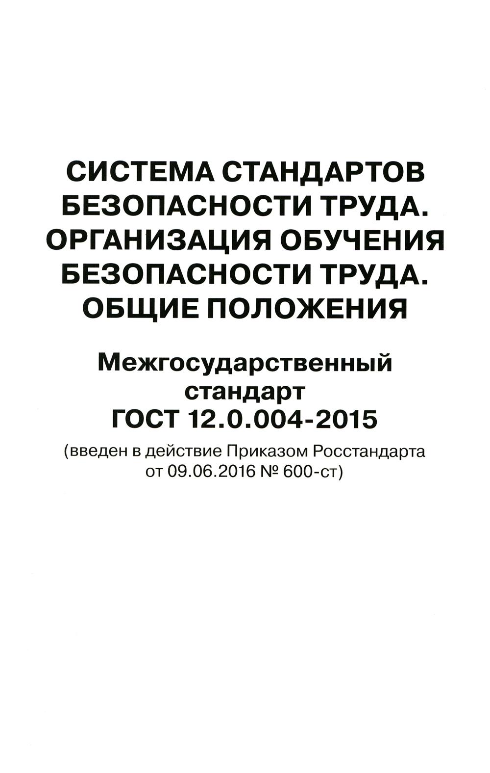 Система стандартов безопасности труда. Организация обучения безопасности труда. Общие положения. Межгосударственный стандарт ГОСТ 12.0.004-2015