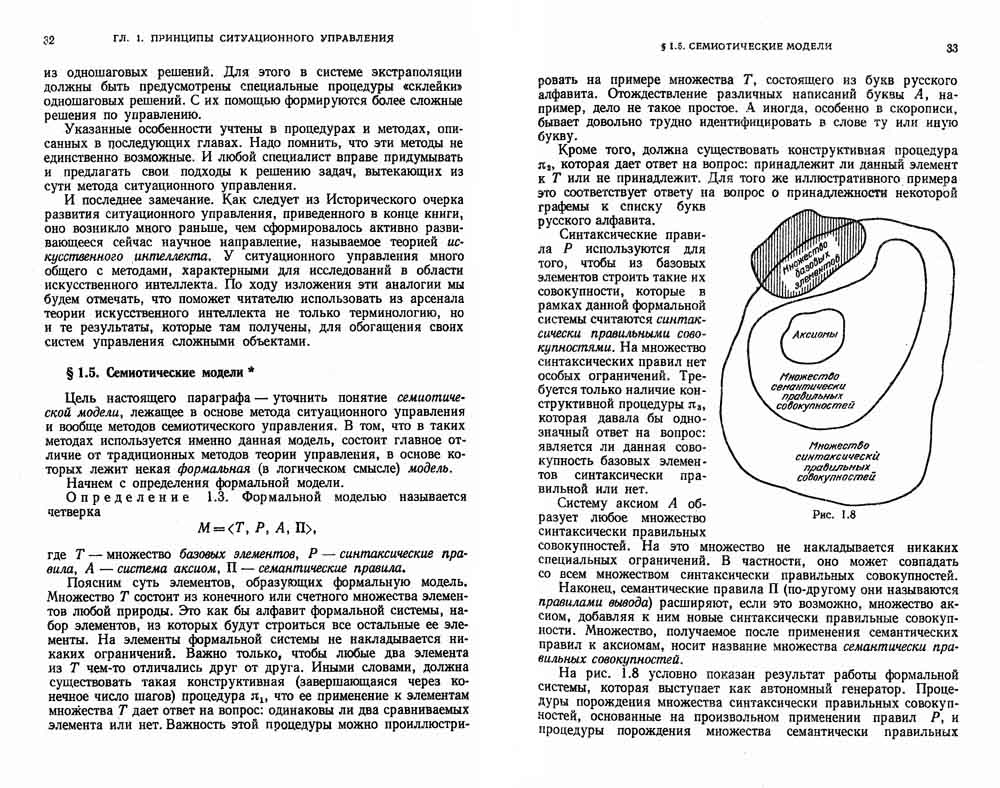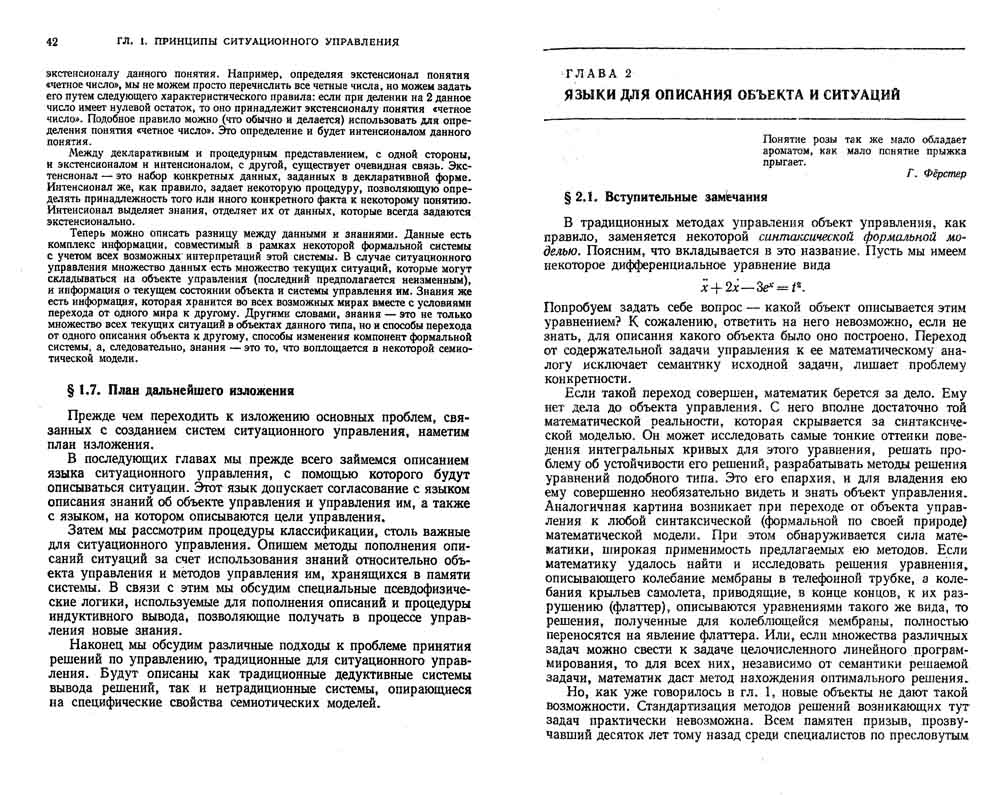 Ситуационное управление - метод управления сложными техническими и организационными системами, основанный на идеях теории искусственного интеллекта: представление знаний об объекте управления и способах управления им на уровне логико-лингвистических моделей, использование обучения и обобщения в качестве основных процедур при построении процедур управления по текущим ситуациям, использование дедуктивных систем для построения многошаговых решений. Излагается методология ситуационного управления, его теоретические основы; приводятся примеры его конкретных применений. Для специалистов в области теории управления и систем искусственного интеллекта.| Издательство | ЛЕНАНД |