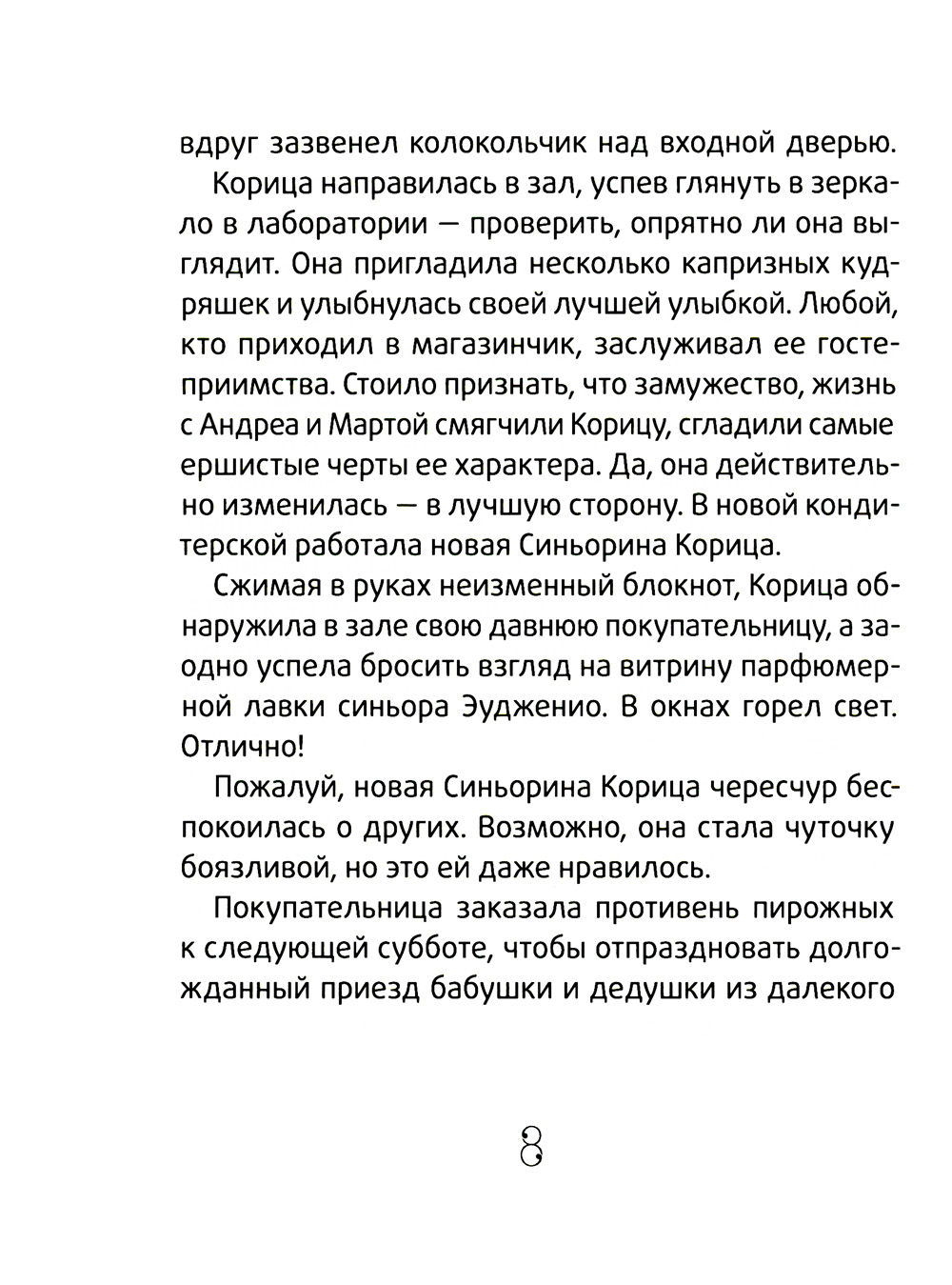 Новая жизнь должна быть новой во всем. Но что делать, если прошлое не отпускает? Синьорина Корица вышла замуж, переехала в чудесный дом и по-прежнему всем помогает. Ее пирожные творят настоящую магию: убеждают поверить в себя, решиться на важный поступок или пережить неудачу. А вот о некоторых своих проблемах отважная и добрая Корица старается не думать. Пока на пороге дома не появляется паренек со скрипкой и рюкзаком. Синьорина Корица готова исправить давние ошибки и начать все с чистого листа. Хоть это поначалу кажется намного труднее, чем приготовить миллион волшебных пирожных. Итальянский писатель, журналист и сценарист Луиджи Баллерини (родился в 1963 году) - автор серии уютных историй о владелице лучшей в мире кондитерской: «Синьорина Корица», «Новая кондитерская Синьорины Корицы», а теперь и «Сюрприз для Синьорины Корицы». Его книги говорят о любви к своему делу, которое в руках мастера становится искусством, будь то работа кулинара, парфюмера или музыканта. В 2014 году книга о Корице, покорившая сердца читателей 9-12 лет, получила престижную итальянскую награду в области детской литературы - Premio Andersen. С 2019 года книги о приключениях Синьорины Корицы выходят на русском языке с иллюстрациями Екатерины Тиховой.| Издательство | ИД КомпасГид |