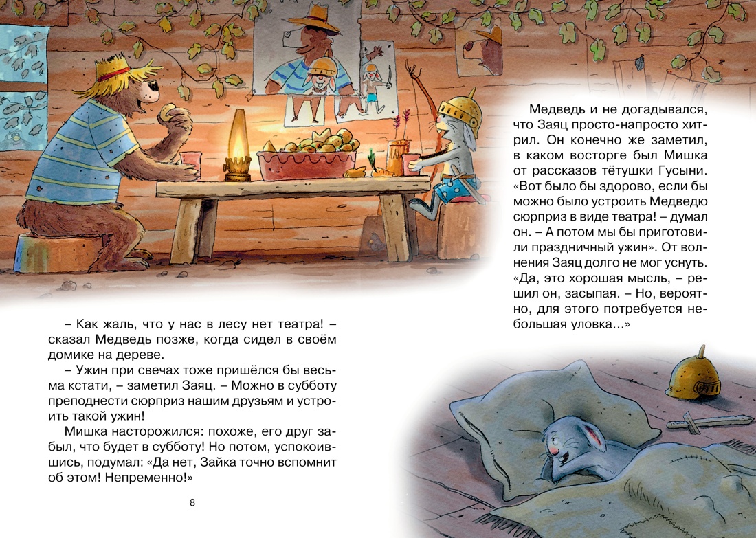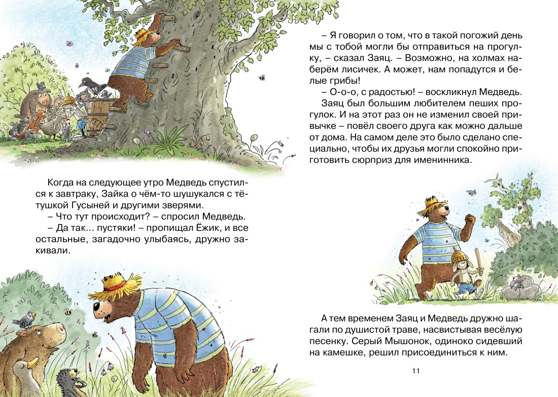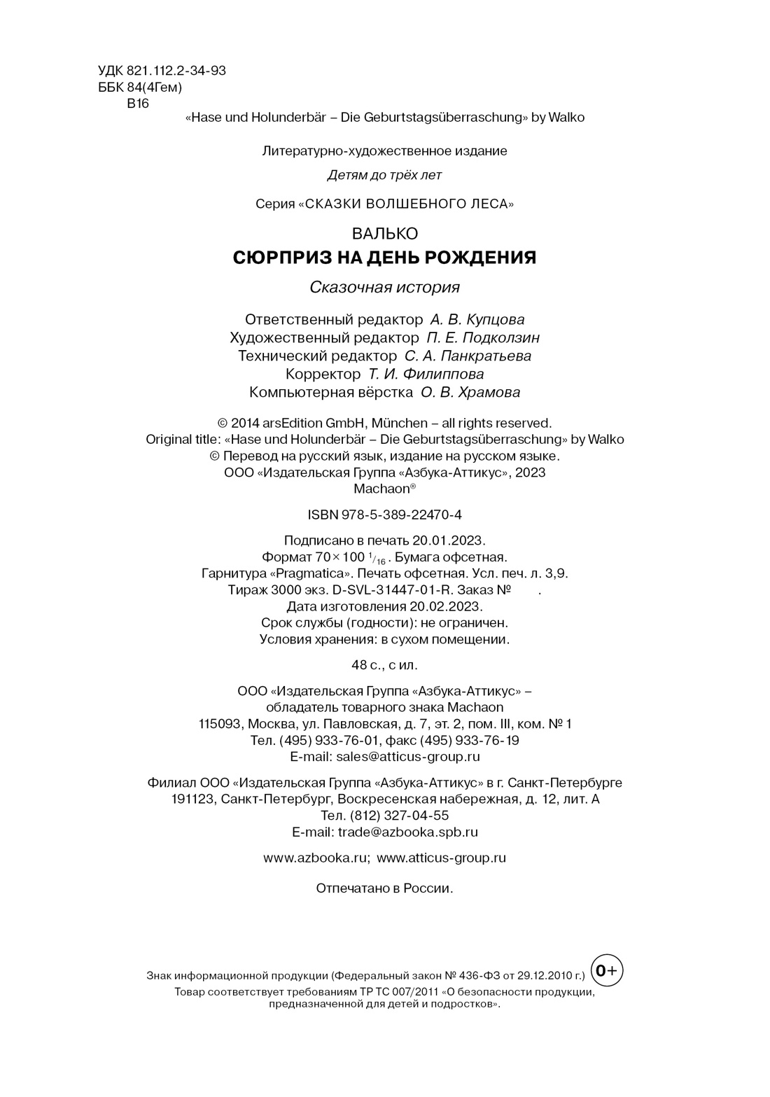 Для самых маленьких читателей увлекательные книги о весёлых приключениях лесных жителей! Заяц и Медведь - лучшие друзья. Они живут в необыкновенном месте - Волшебном лесу. Каждый день их ждут новые приключения, иногда опасные, но всегда захватывающие. Автор и художник Валько записал и проиллюстрировал удивительные истории о Зайце и Медведе. Так появились сказки Волшебного леса. У Медведя скоро день рождения, и жители Волшебного леса решили организовать для него грандиозный праздник. Чего Заяц только не делал, чтобы лучший друг не узнал о готовящемся сюрпризе! Даже притворился, что забыл о таком важном событии. Догадается ли Мишка, что задумали его друзья?| Издательство | Махаон |