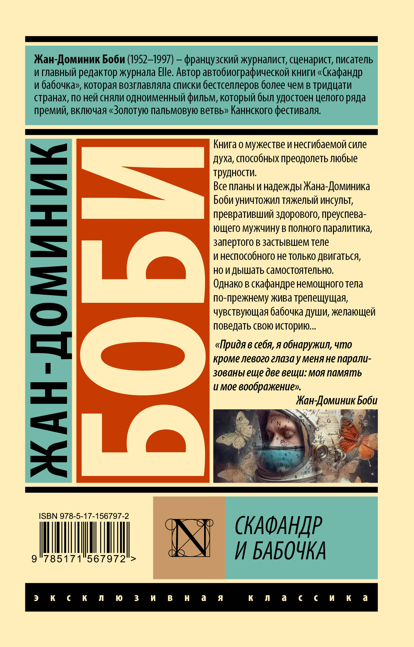 Книга о мужестве и несгибаемой силе духа, способных преодолеть любые трудности. Все планы и надежды Жана-Доминика Боби уничтожил тяжелый инсульт, превративший здорового, преуспевающего мужчину в полного паралитика, запертого в застывшем теле и неспособного не только двигаться, но и дышать самостоятельно. Однако в скафандре немощного тела по-прежнему жива трепещущая, чувствующая бабочка души, желающей поведать свою историю...| Издательство | ИЗДАТЕЛЬСТВО "АСТ" |