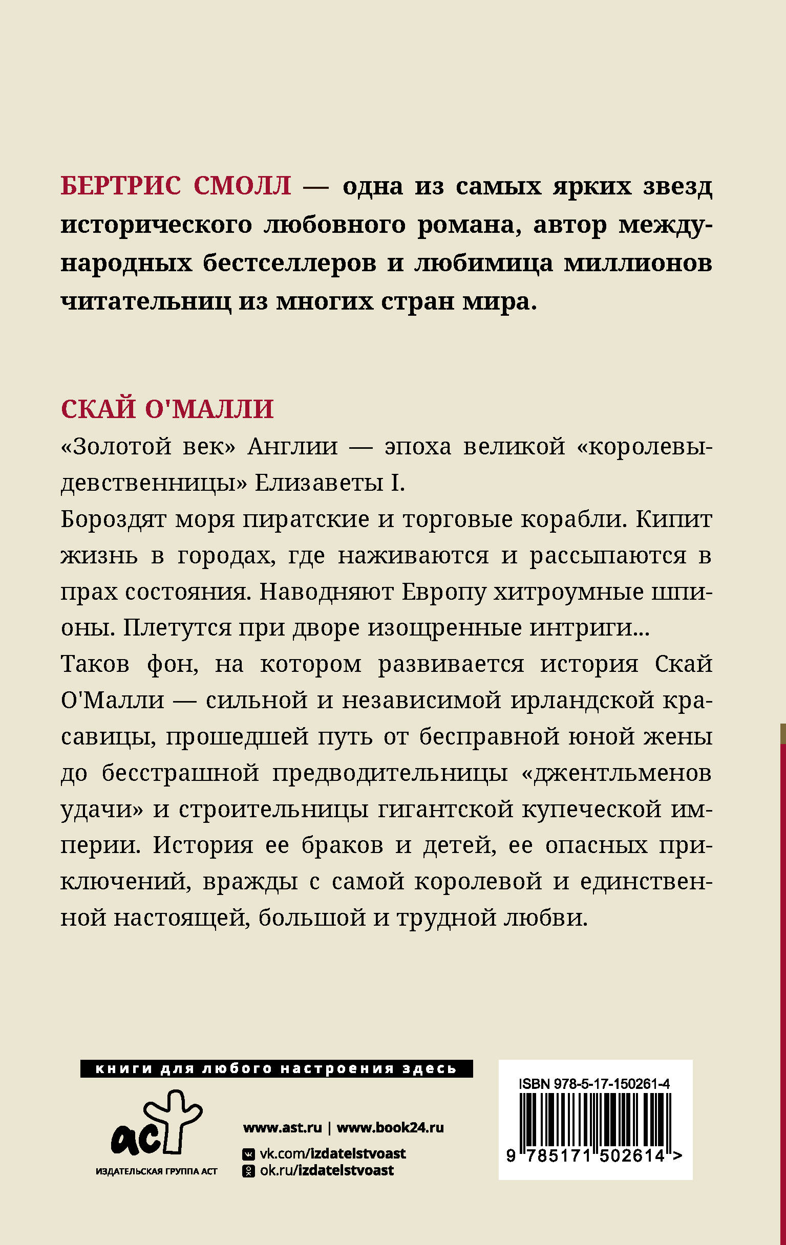 "Золотой век" Англии - эпоха великой "королевы-девственницы" Елизаветы I. Бороздят моря пиратские и торговые корабли. Кипит жизнь в городах, где наживаются и рассыпаются в прах состояния. Наводняют Европу хитроумные шпионы. Плетутся при дворе изощренные интриги... Таков фон, на котором развивается история Скай О'Малли - сильной и независимой ирландской красавицы, прошедшей путь от бесправной юной жены до бесстрашной предводительницы "джентльменов удачи" и строительницы гигантской купеческой империи. История ее браков и детей, ее опасных приключений, вражды с самой королевой и единственной настоящей, большой и трудной любви.| Издательство | ИЗДАТЕЛЬСТВО "АСТ" |