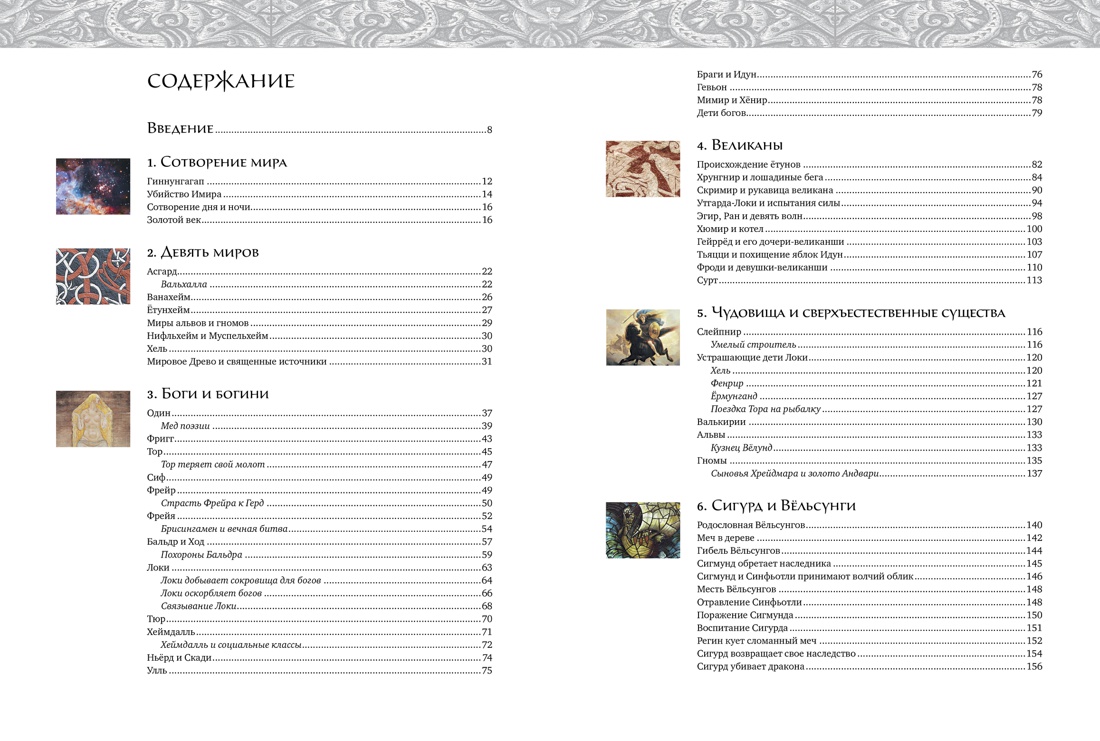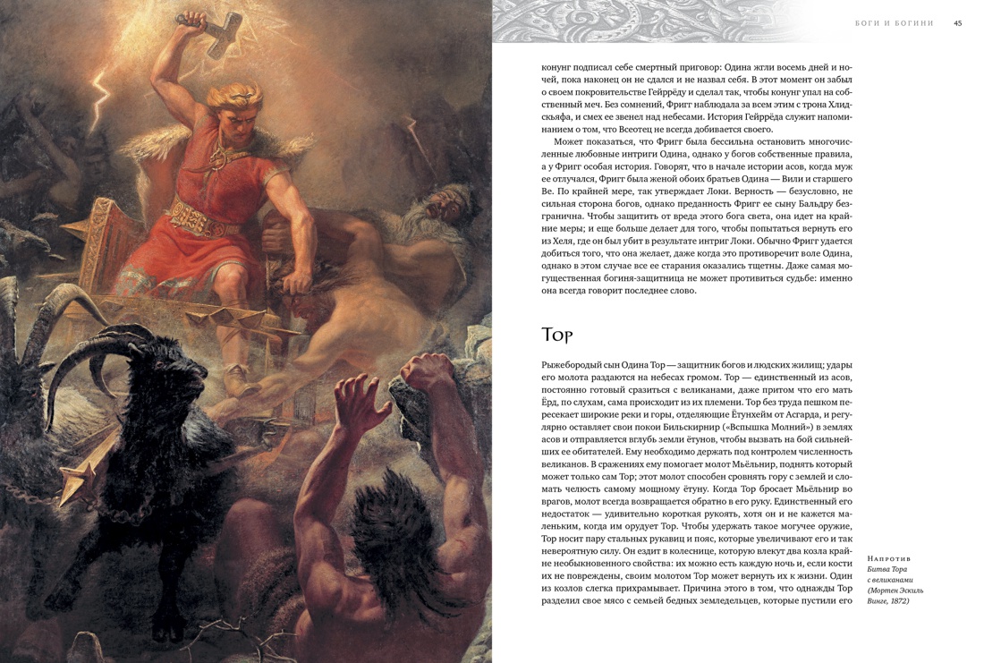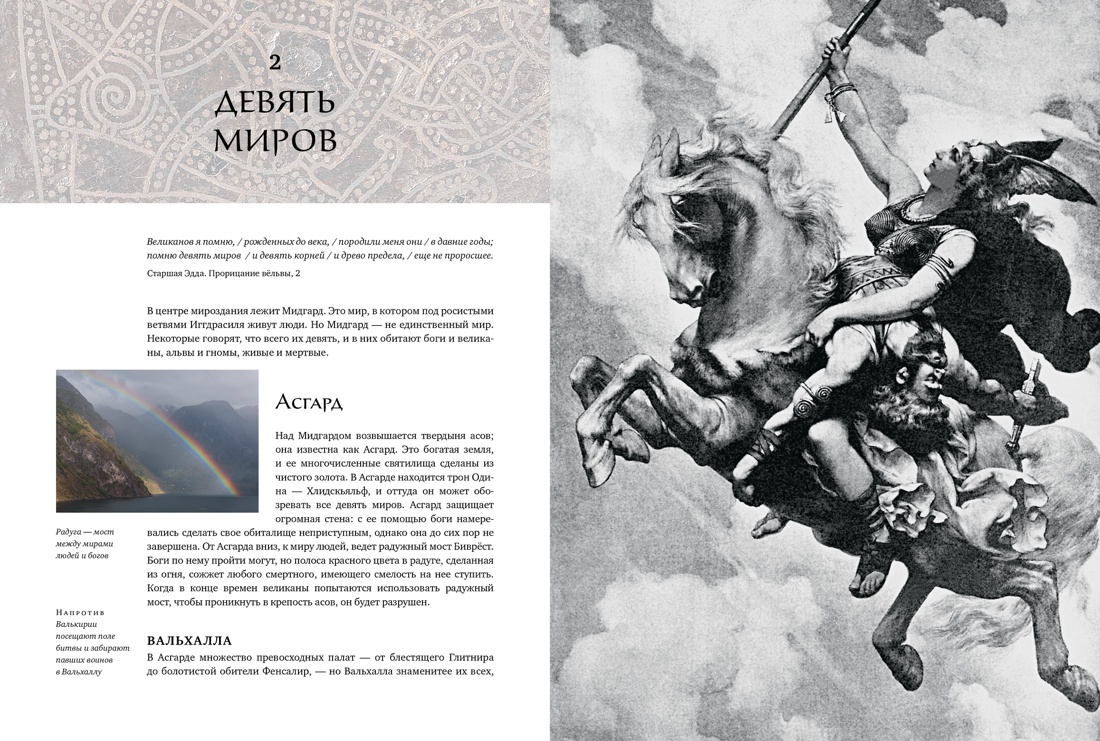 Скандинавские мифы - яркий пример живой мифологии: истории обрастают новыми сюжетными поворотами, образами и деталями и адаптируются с течением времени, сохраняясь в различных вариантах. Эти поэтические и прозаические произведения, первоначально бытовавшие в устной традиции, наполнены множеством аллюзий и чрезвычайно сложны для изучения как в оригинальном виде, так и в переводе. Том Биркетт поставил своей целью систематизировать скандинавские мифы и пересказать их доступным языком, опираясь на солидную научную базу. Кроме пересказа мифов о сотворении мира, о девяти мирах и Мировом Древе Иггдрасиле, о самых известных богах и богинях (Один, Фригг, Тор, Сиф, Фрейр, Фрейя, Бальдр и других), о ётунах-великанах, о чудовищах, альвах и гномах, о герое Сигурде и Вёльсунгах, ведущих свое происхождение от Одина, и о других легендарных героях, книга повествует об исследовании викингами Северной Атлантики (о заселении Исландии и первопроходцах, об открытии Гренландии Эриком Рыжим и Винланда Лейфом Эрикссоном), об экспедициях на Восток и Юг (о путешествиях по Балтике, о связях с Русью, о Харальде Суровом и Константинополе, о халифате), о королях Севера (от первого короля Норвегии Харальда Прекрасноволосого до последнего короля викингов Харальда Хардрада). Отдельного внимания заслуживает обзор источников по скандинавской мифологии и многообразия интерпретации ее мотивов в искусстве, литературе, политике и популярной культуре, в том числе видеоиграх (Skyrim и World of Warcraft), японской манга и корейских ролевых онлайн-играх. Издание превосходно иллюстрировано гравюрами и цветными репродукциями шедевров мировой живописи и графики.