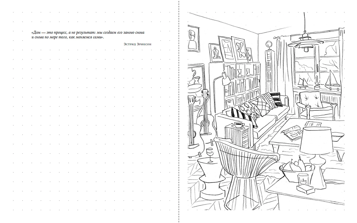 Возьмите в руки карандаши и окунитесь в мир уюта! Перед вами раскраска-антистресс от автора книги «Скандинавский дизайн: Как сделать дом уютным». Разместитесь в любимом кресле, укутайтесь в мягкий плед и раскрасьте минималистичные интерьеры, солнечные пейзажи на морском берегу, сценку в уличном кафе или фрагмент дачного сада. На свободном месте рядом можно записать ваши мысли, набросать скетчи или приклеить любимые фотографии. Этот альбом поможет сделать паузу и зарядиться позитивом.