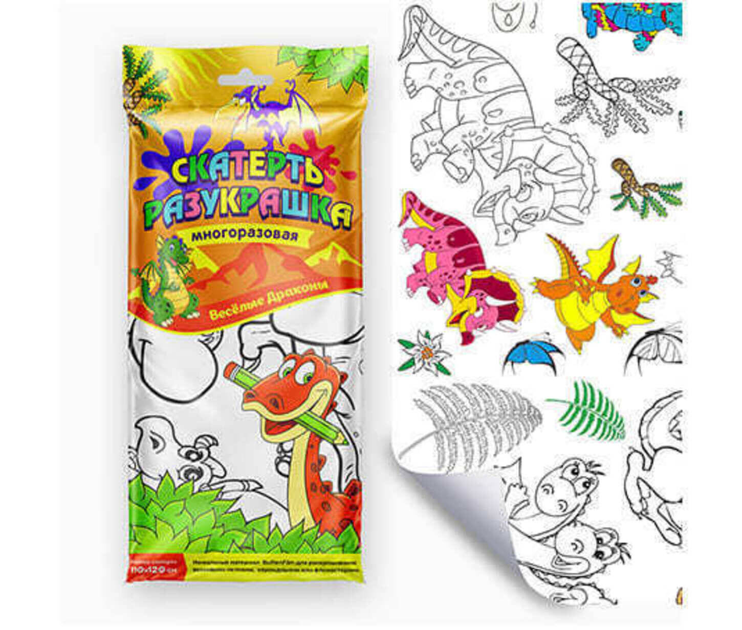Скатерть-разукрашка "Весёлые драконы" - это новая коллекция скатертей-раскрасок из материала ButtenFilm и отличная возможность познакомить детей с фантастическим миром драконов и динозавров. Скатерть изготовлена из материала ButtenFilm, имеет размеры 1100x1200x0,060, стандарт 60/1| Издательство | ПТК Союз-Полимер ООО |