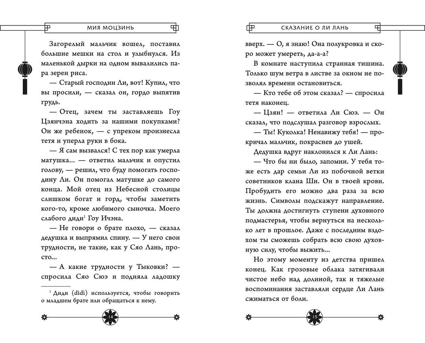 Потрясающая новинка с азиатским сеттингом от Мии Моцзинь - писательницы из Сибири, фанатки китайской культуры. Роман вошел в Топ-10 шорт-листа литературного конкурса Author.Today «Воины Поднебесной». Для всех поклонников Китая, Востока и романов в духе «Восхождения фениксов» Тянься Гуань, «Железной вдовы» Сиран Джей Чжао, «Дочери лунной богини» Сью Линн Тань. Ли Лань умерла, чтобы вернуться в прошлое и искупить вину. В то солнечное весеннее утро, когда персиковое дерево цвело у пересечения каменных дорожек во дворе ее дома, еще не было разрушенных стен, выжженной травы, кровавых потеков на расколотых камнях. Ничего, что предвещало бы наступление Великого бедствия трех миров. Теперь ей предстоит пережить эти три года снова и постараться спасти близких, разгадав тайну своего происхождения... «Сказания о Ли Лань» - китайское фэнтези, поджанры «уся», «сюаньхуань», а значит, здесь вы встретите вкрапления современных технологий Запада, а также гомункулов, химер, разные артефакты. Книга также имеет троп «манапанк», техномагия. Действие происходит в эпоху правления ранней династии Цин, но имеет признаки современной культуры благодаря артефактам. Например, арт-веера (смартфоны), летающие корабли на природной духовной силе (бай-ци).| Издательство | ООО "Издательство "Эксмо" |