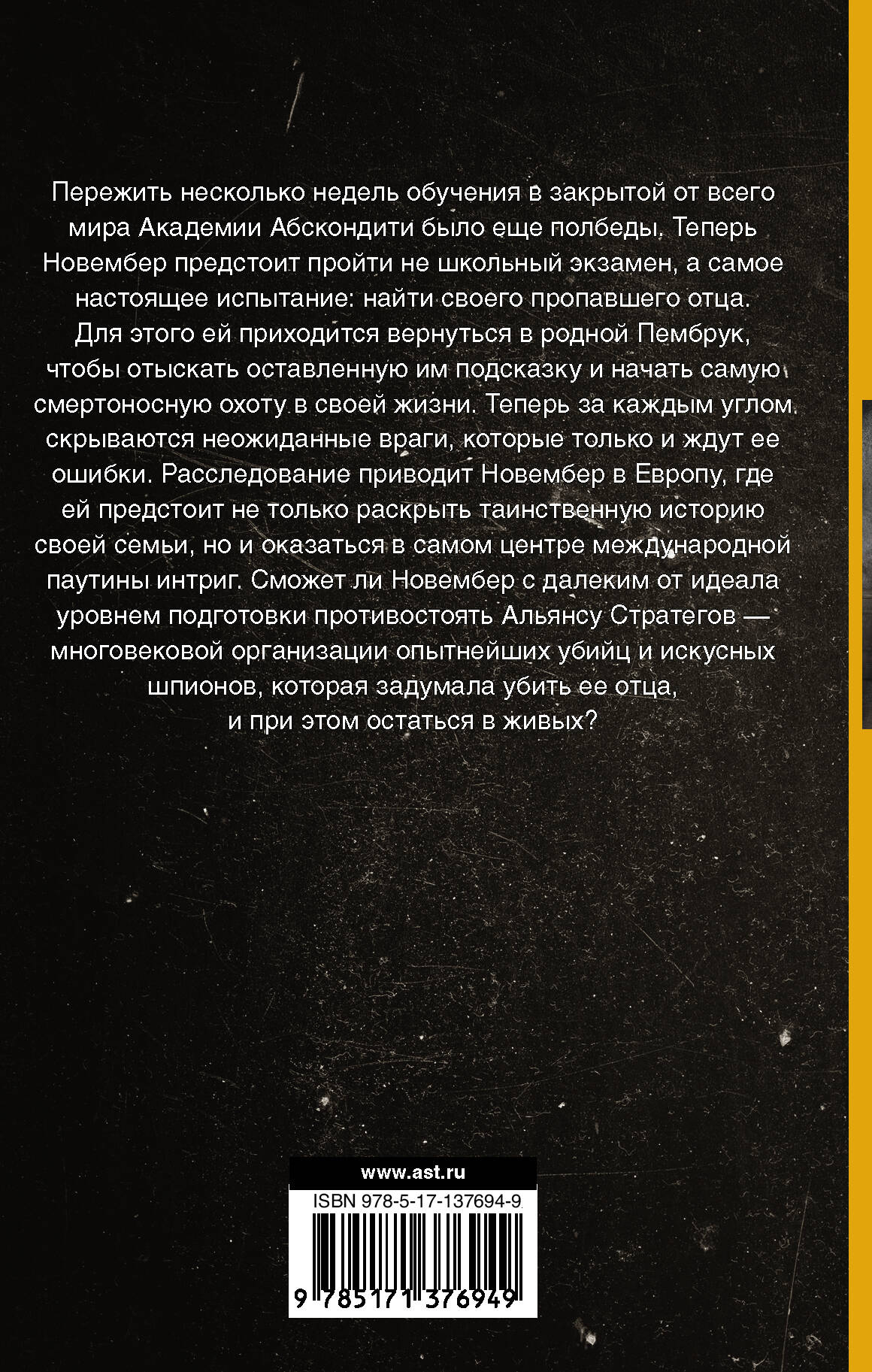 Долгожданное продолжение захватывающего триллера «Скажи мне, кто я» продолжает историю необыкновенной девушки Новембер, которая отправляется на поиски своего пропавшего отца. Поиски приводят Новембер в Европу, где за каждым углом прячутся неожиданные враги, которые только и ждут её ошибки. Девушке предстоит узнать таинственную историю своей семьи и распутать международную паутину интриг. Сможет ли Новембер оказать отпор профессиональным убийцам, спасти своего отца и самой остаться в живых? Адриана Мэзер - популярная актриса, писательница и продюсер, автор культового романа «Как повесить ведьму». Цикл «Охота на Новембер» - увлекательный литературный коктейль, который придётся по нраву всем поклонникам циклов «Дивергент» и «Голодные игры» и романа «Один из нас лжёт».| Издательство | ИЗДАТЕЛЬСТВО "АСТ" |