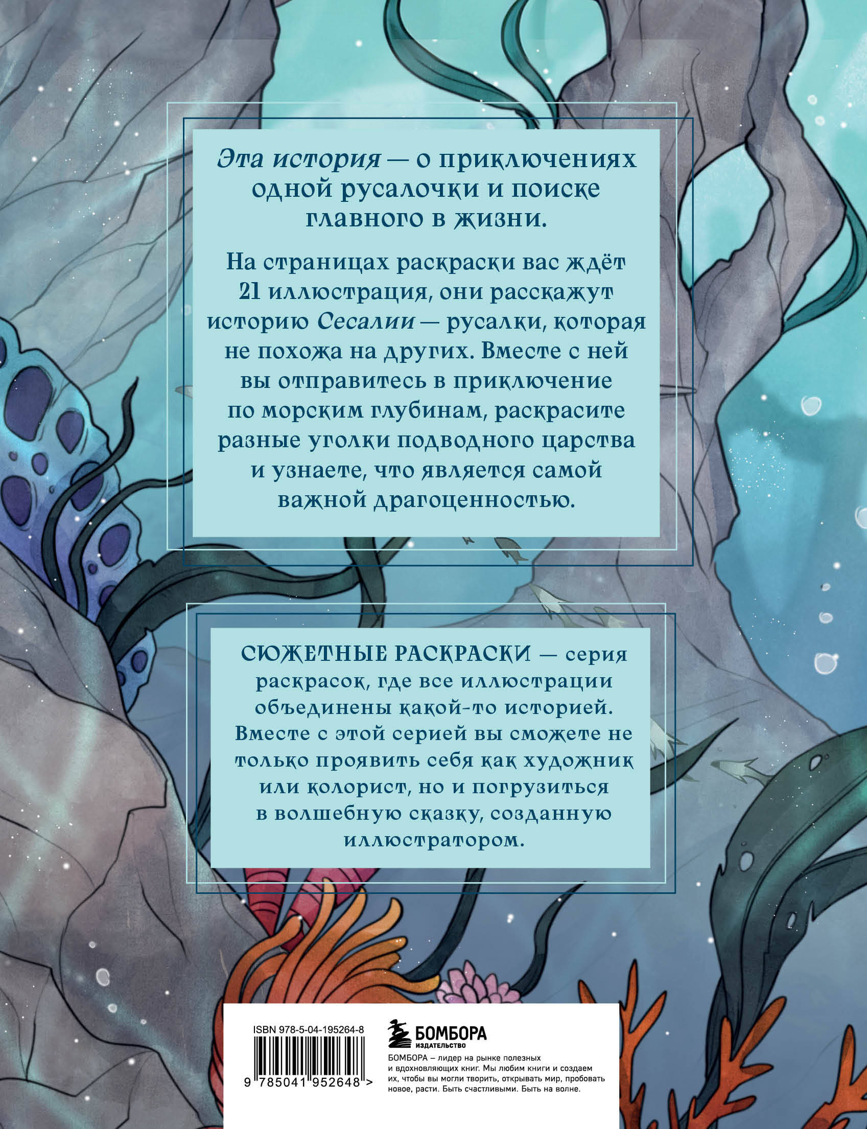 Погрузитесь в магию подводного мира вместе с этой раскраской! На ее страницах вы сможете оживить удивительную историю необычной русалочки Сесалии. Все иллюстрации связаны единым повествованием: раскрашивая один рисунок за другим, вы сможете воссоздать большое приключение, которое однажды случилось в подводном царстве. Берите маркеры, цветные карандаши и другие любимые материалы и создайте свою версию этой волшебной истории прямо сейчас! Сюжетные раскраски - серия раскрасок, где все иллюстрации объединены какой-то историей. Вместе с этой серией вы сможете не только проявить себя как художника или колориста, но и погрузиться в волшебную сказку, созданную иллюстратором.| Издательство | ООО "Издательство "Эксмо" |
