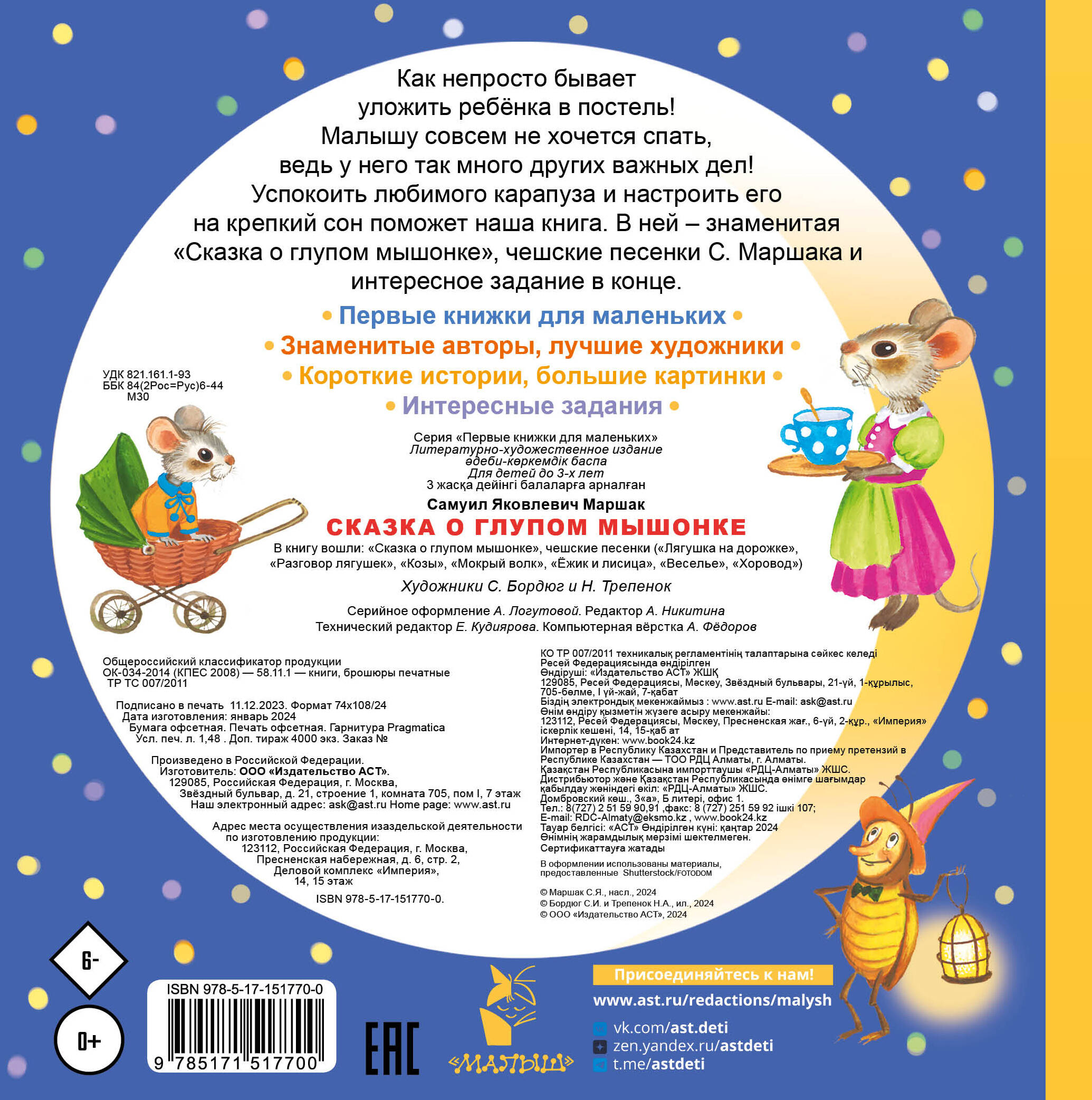 Малышам и малышкам маленькие книжки! Самые знаменитые произведения с яркими картинками очень интересно слушать и рассматривать, потом рассказывать их по картинкам, а потом уже и самим читать мамам и папам. Эти книжки станут самыми любимыми у ваших малышей!: • Первые книжки для маленьких • Знаменитые авторы, лучшие художники • Короткие истории, большие картинки • Интересные задания| Издательство | ИЗДАТЕЛЬСТВО "АСТ" |