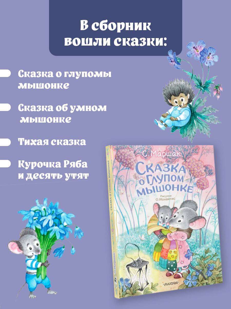 Маршак Самуил Яковлевич - поэт, писатель, одарённый большим талантом. Его первая книга для детей вышла 100 лет назад. И до сих пор все детские книги С. Маршака пользуются любовью у маленьких читателей. В состав нашей книги серии «Классики детской книги» вошли стихотворные сказки: «Сказка о глупом мышонке», «Сказка об умном мышонке», «Курочка ряба и десять утят» и «Тихая сказка». Издание в новом оформлении с чудесными иллюстрациями О. Ионайтис.