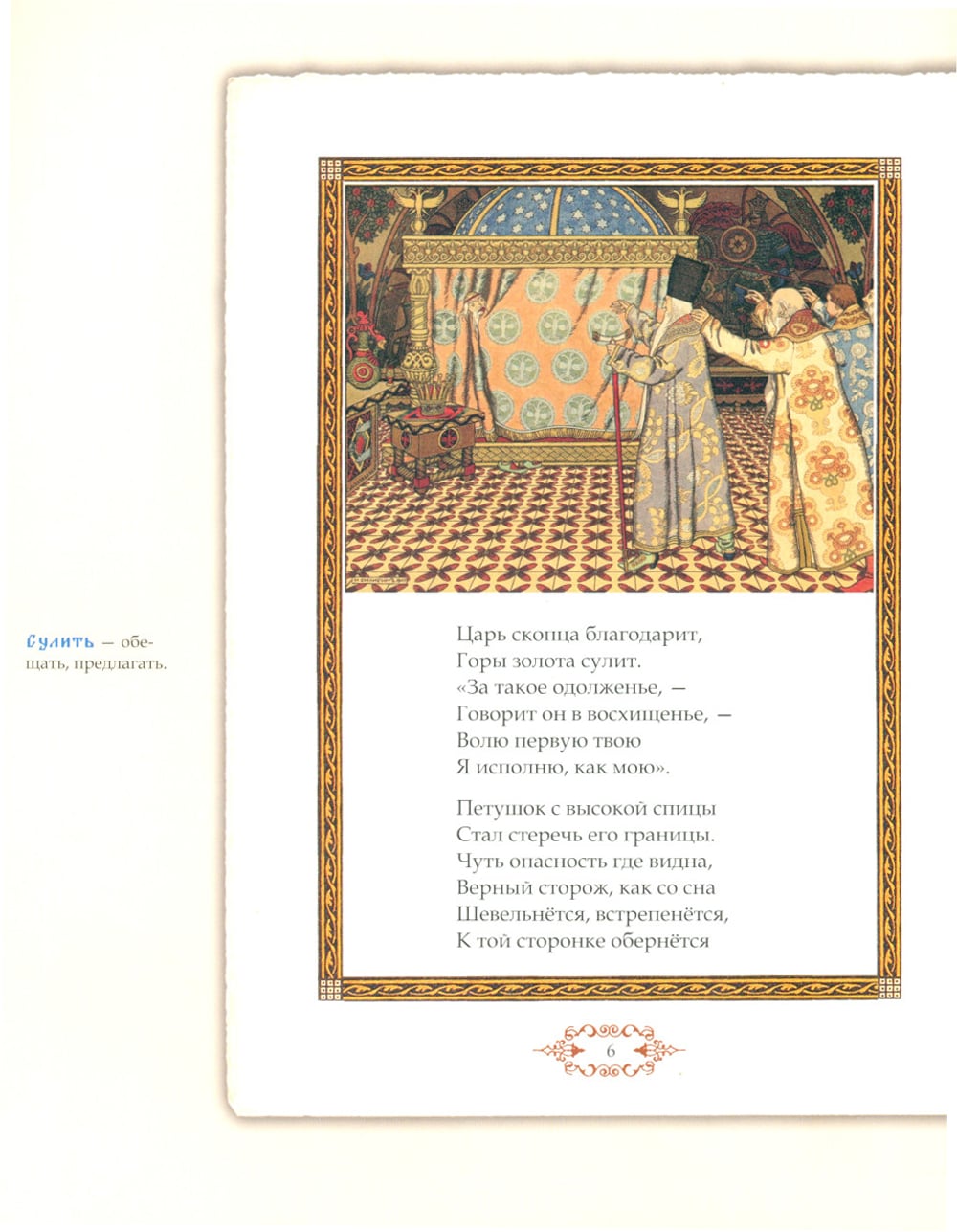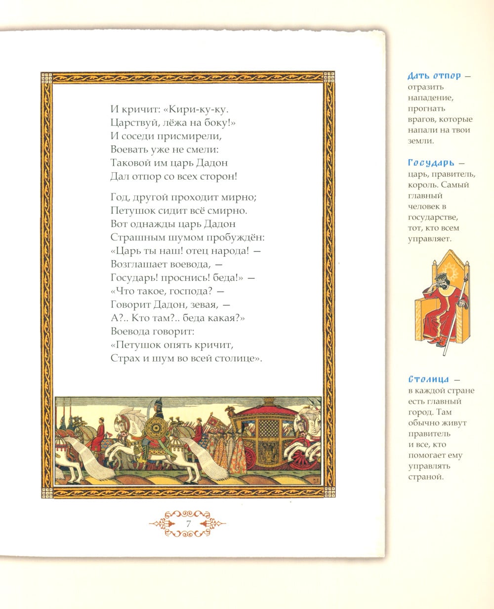 Издание содержит текст любимой многими поколениями детей и взрослых «Сказки о золотом петушке» А. С. Пушкина с иллюстрациями замечательного русского художника Ивана Билибина. Формат «книга в книге» поможет объяснить ребёнку значение неизвестных ему слов и выражений, не отвлекаясь от чтения шедевра Пушкина.| Издательство | Проспект |