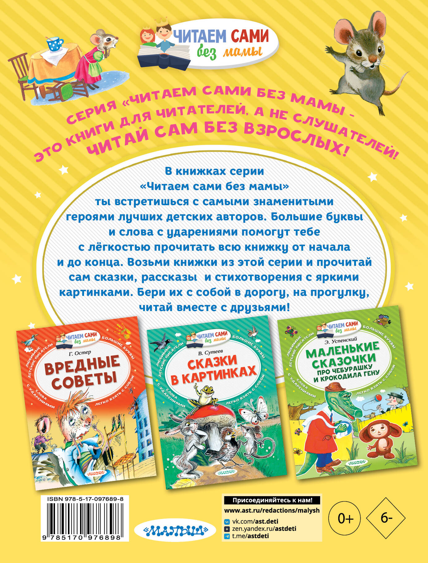 В книжках серии «Читаем без мамы» ты встретишься с самыми знаменитыми героями лучших детских авторов. Большие буквы и слова с ударениями помогут тебе с лёгкостью прочитать всю книжку от начала и до конца. Возьми книжки из этой серии и прочитай сам сказки, рассказы и стихотворения с яркими картинками. Бери их с собой в дорогу, на прогулку, читай вместе с друзьями!