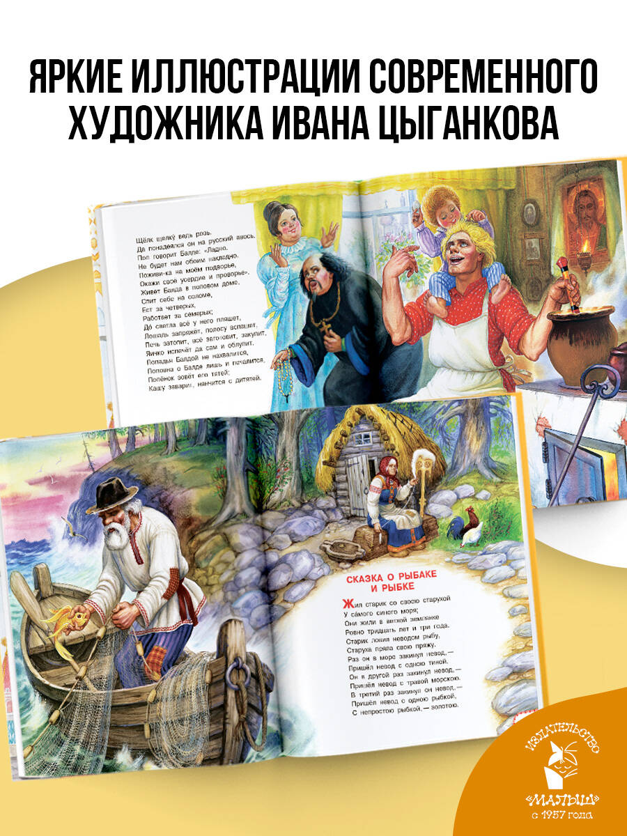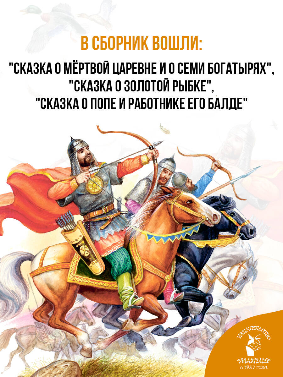В сказочном лукоморье обитают лешие и русалки, избушка на курьих ножках и невиданные звери, тридцать три богатыря и их бравый дядька Черномор. А где-то совсем рядом ищет свою прекрасную невесту королевич Елисей, Балда пытается обхитрить чертей, а старик вновь и вновь кличет золотую рыбку. Весь этот удивительный мир - мир сказок Александра Сергеевича Пушкина. Вы найдёте его на страницах нашей книги. В ней лучшие сказки великого поэта - «Сказка о мёртвой царевне и о семи богатырях», «Сказка о золотой рыбке», «Сказка о попе и работнике его Балде», а также отрывок из поэмы «Руслан и Людмила».| Издательство | Издательство "АСТ" |