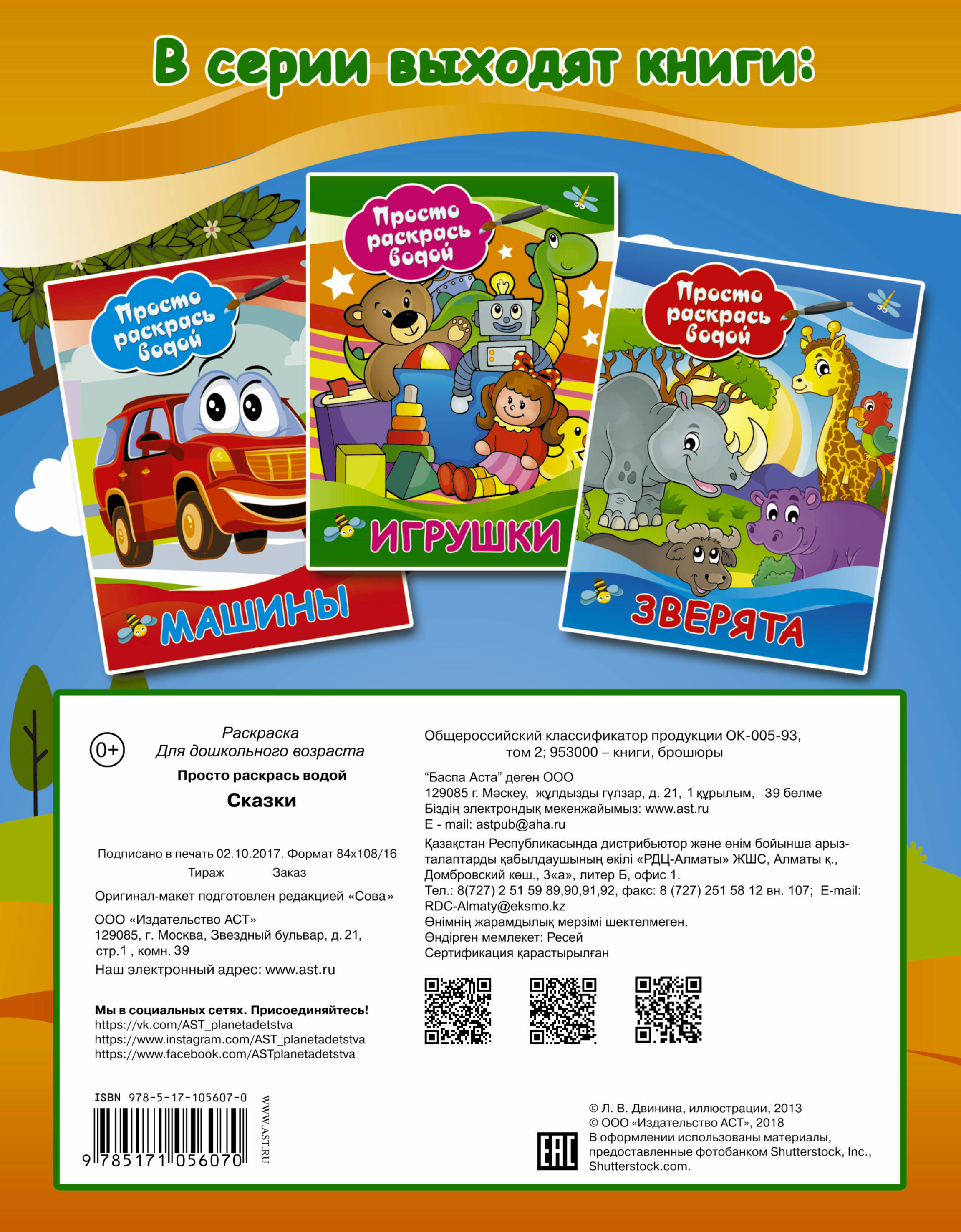 О чем эта книга В уникальной раскраске малышей ждут герои мультфильмов, которых можно раскрасить водой. Кому эта книга будет интересна Это издание - отличный подарок для маленьких художников. Каковы особенности этой книги - Хотите занять ребенка увлекательным делом и интересно провести время со своим малышом - подарите ему водную раскраску. - Фантазировать и играть можно, обмакнув кисточку в воду и раскрасив картинки. - С классной водной раскраской ребенок точно не будет скучать!| Издательство | Издательство "АСТ" |